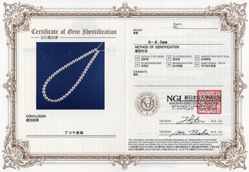 ▷ 照り巻きの綺麗なアコヤパールネックレス8.5mm-8mm信頼の鑑別付