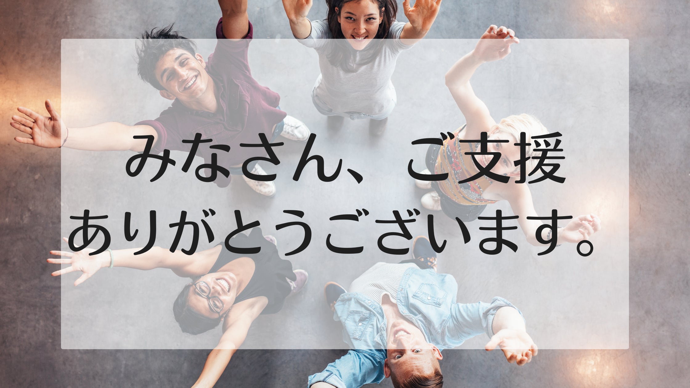 みなさん、こんにちは!ちぐさです。昨夜、クラウドファンディングが終了しました。結果は上手くいきませんでした。が!勝手ながら得られたものは大きいと感じております。みなさんからの応援、お会いしたことない方からの頑張れ!が、励みになりました。本当にありがとうございます!今後ともよろしくお願いいたします(^^)【返金に関して】https://help.camp-fire.jp/hc/ja/search?category=204192428&filter_by=knowledge_base&query=%E8%BF%94%E9%87%91&utf8=%E2%9C%93最後は元気にハイタッチで終わりましょう♪