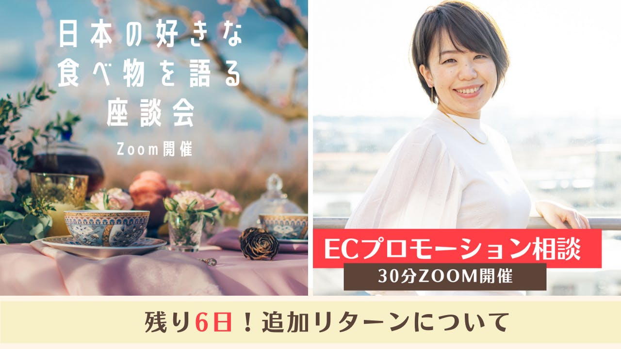ECプロモーション相談は、まだまだ私もEC事業については経験が浅いですが、多くの方とお話を重ね少しずつ知識もついてきました。プロモーションに関しては会社を辞めてから10年間ずっとたずさわってきた分野になりますので、その経験もいかし何かお役立ちできることがあればと思いリターンに追加しました。もし悩んでいる方がいらしたら、こちらでお話しできるとうれしいです。