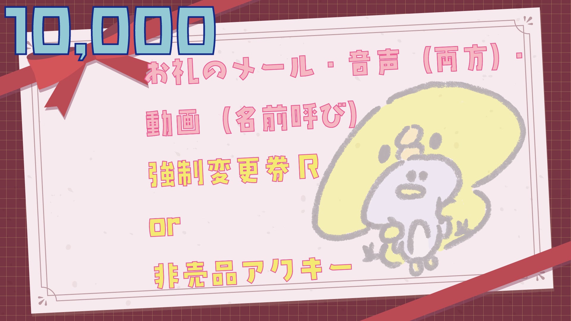 完成した見た目でお礼の動画を撮らせてもらうよ。名前入りを希望している場合は呼んでほしい名前を教えてね。(MP4形式を予定)