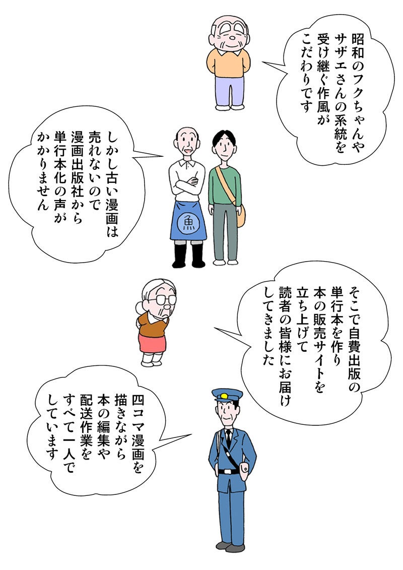 古典的な四コマ漫画の文化を伝え残す試みに、共感していただければ幸いです。