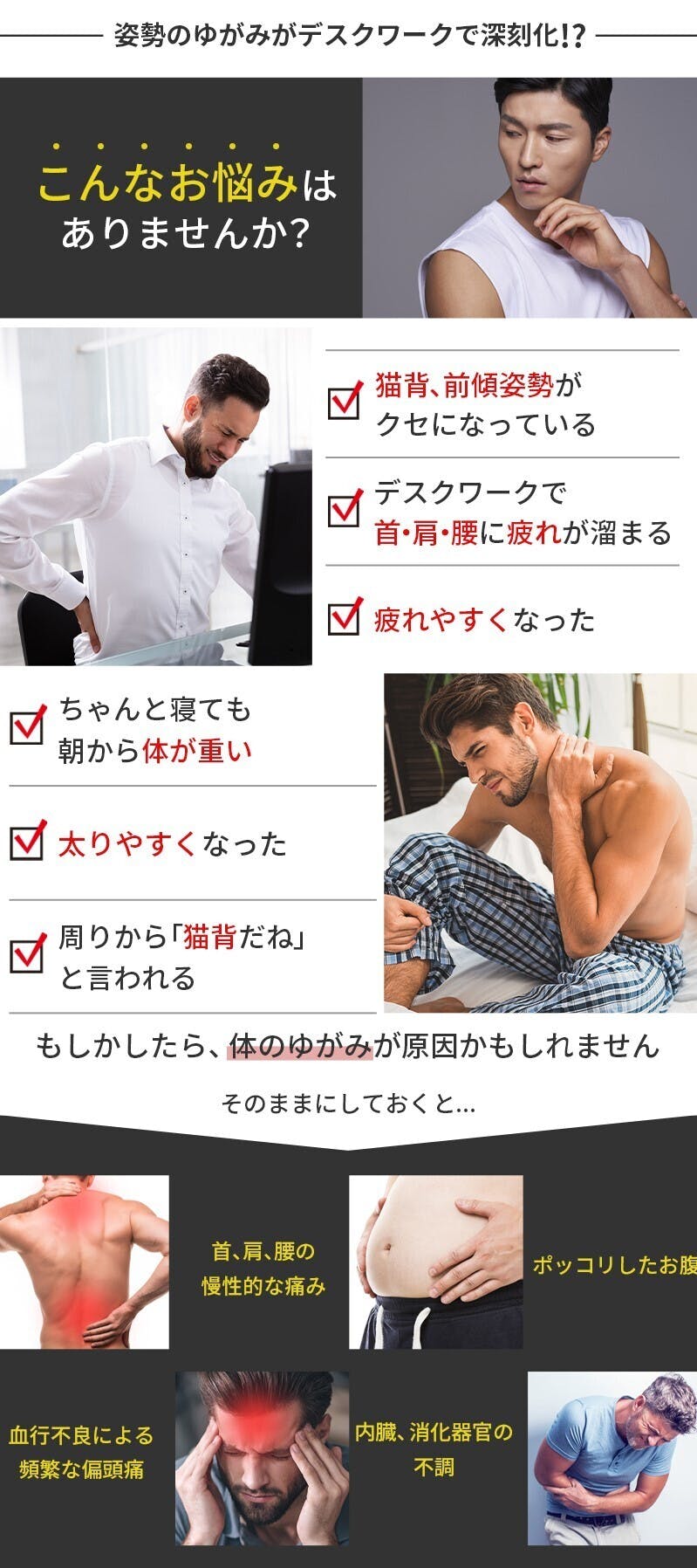 姿勢の悩みを同時にサポート!