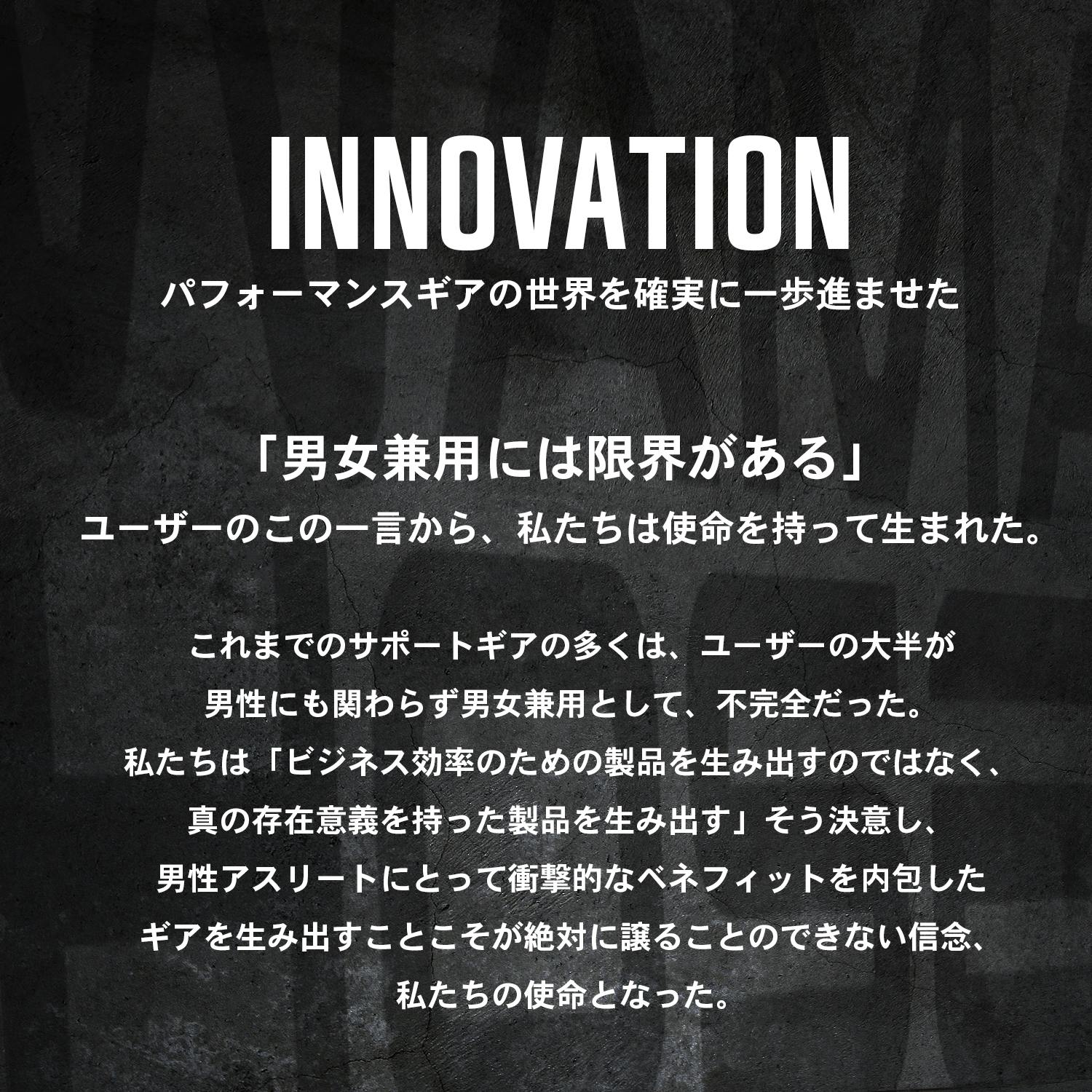 男性の骨格を研究した上での最適な構造を追求しておりますので、サイズ適応範囲内であっても、男性と女性の方では骨格が異なるために、「フィットしない」、「思ったサポート力や効果が得られない」、などの可能性がございますので誠に申し訳ございませんが、女性の方の着用を目的としてのご購入は、お控え下さいますようお願い致します。