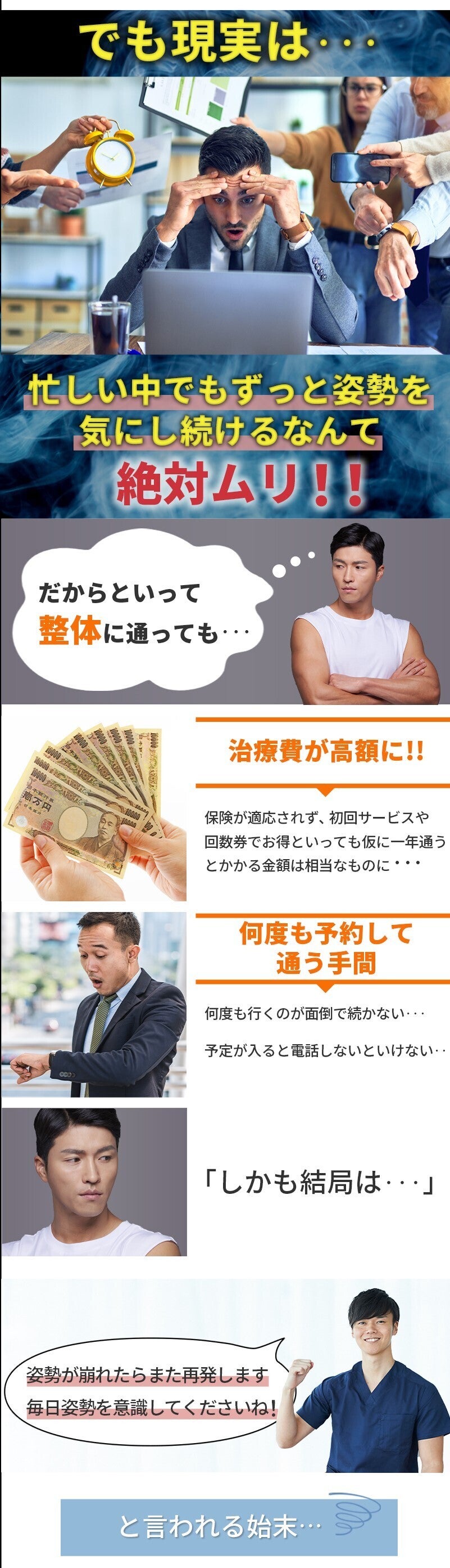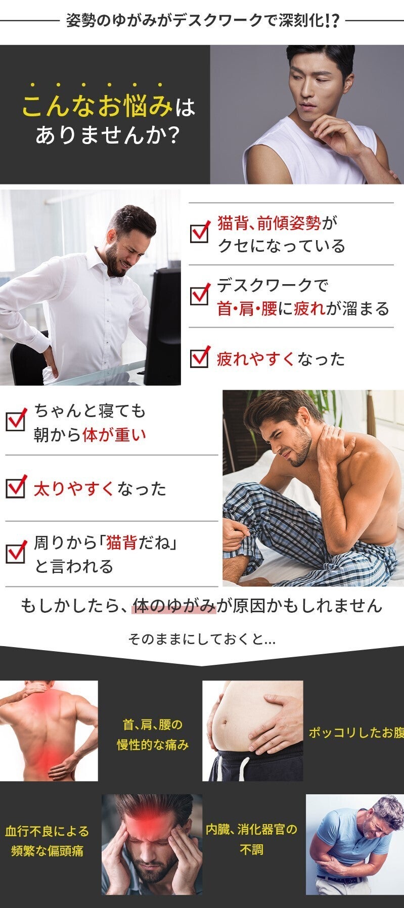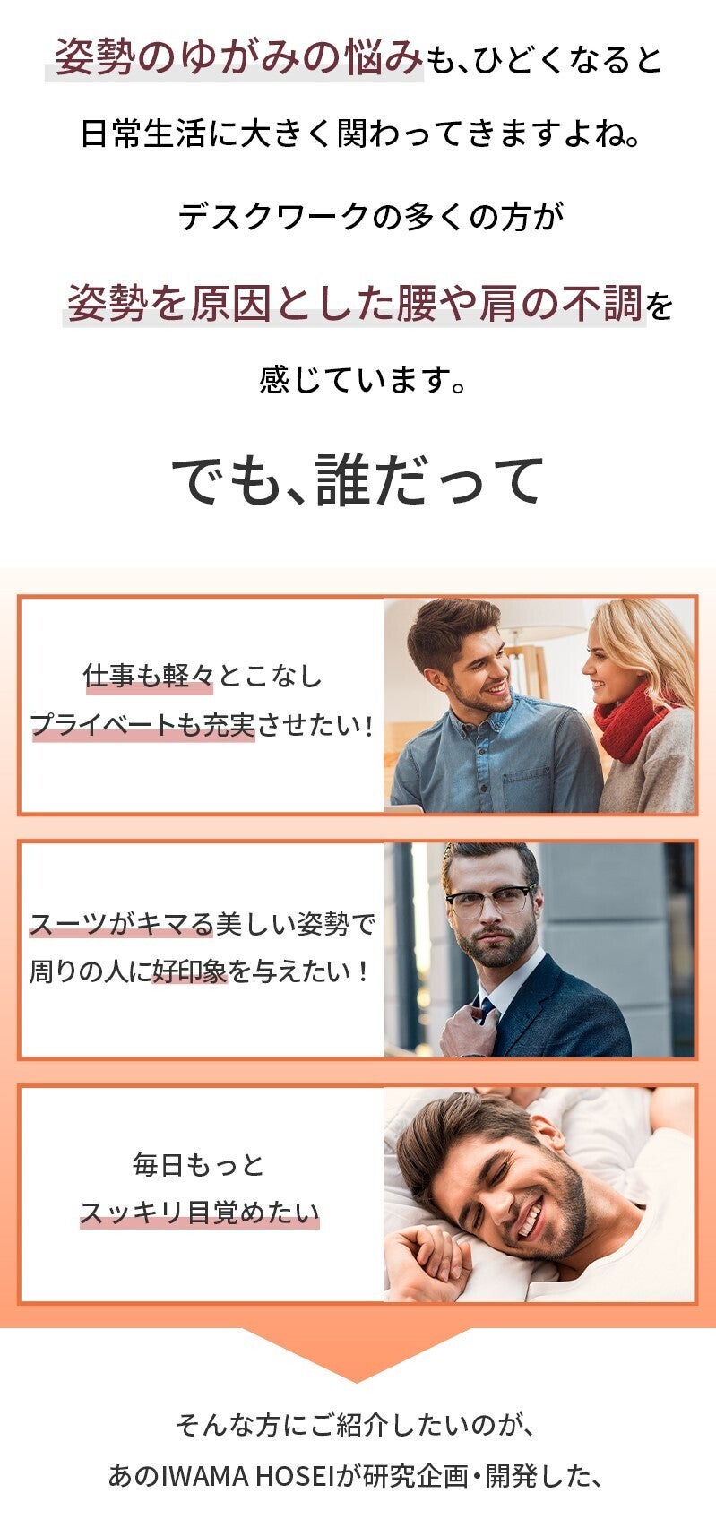 「着けるだけ、正しい姿勢へ無意識に導く」、をテーマに開発した姿勢サポーター。