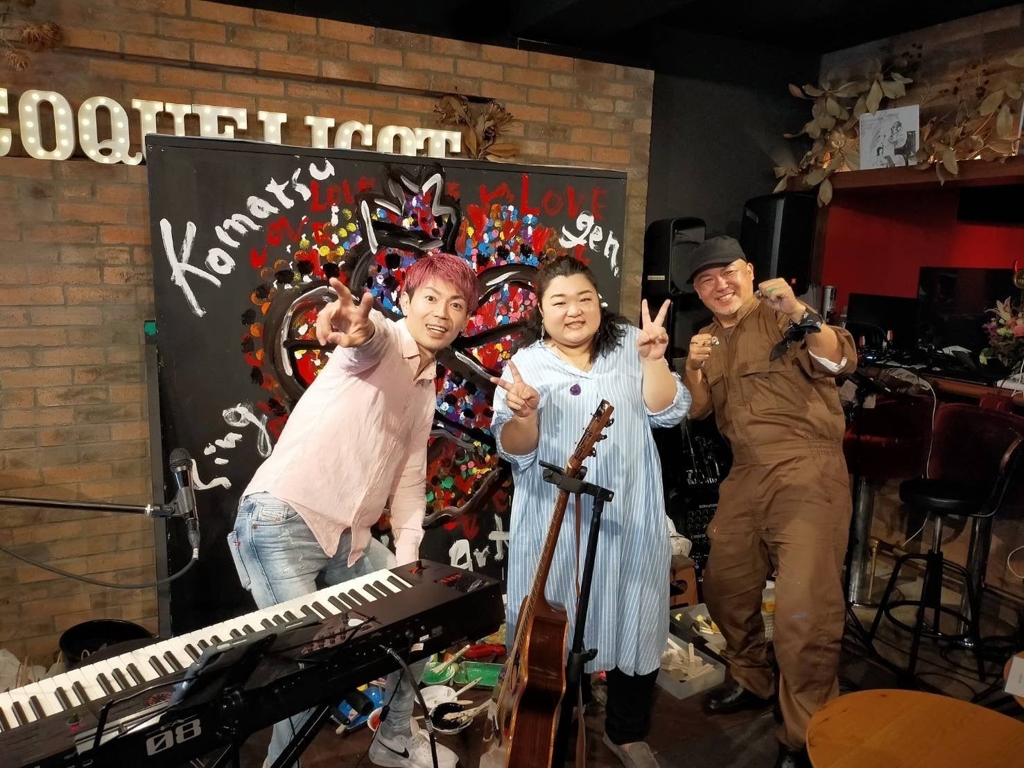 2022/05/02 20:204月30日声松優一さんと岡元邦治さんとのバースデー&リリース&ペイントパーティーでした!もう。とにかく。最高でした!泣いて、笑って、歌って、笑って。歌いながら目が合う声松さんとげんさん。ずっとニコニコ止まらない!笑そして歌いながらもう涙が止まらん曲もあって。でも、二人はニッコニコ!いいじゃんいいじゃん!感情出ちゃっていいじゃん!って声が目から聞こえてきたようで。。笑不思議ととても安心感もあって最後まで歌いきることができました。でも、その間にも文字や色が大きいキャンバスに描かれていってそれを見たらもう鼻の奥がツンとして大変でした・・声松さんが奏でる音や声、げんさんの描く色や絵は幸せのしるし。一線で活動されているおふたりに交じって声を合わせるというすごく光栄な一日でした。たくさんの方にCDも買っていただきました。リリースされてから数日。ライブ配信でもBGMに聞いてくださる方もいて嬉しい限りです!もっともっとたくさんの方に届きますように。 もっと見る4/27 無事リリース!