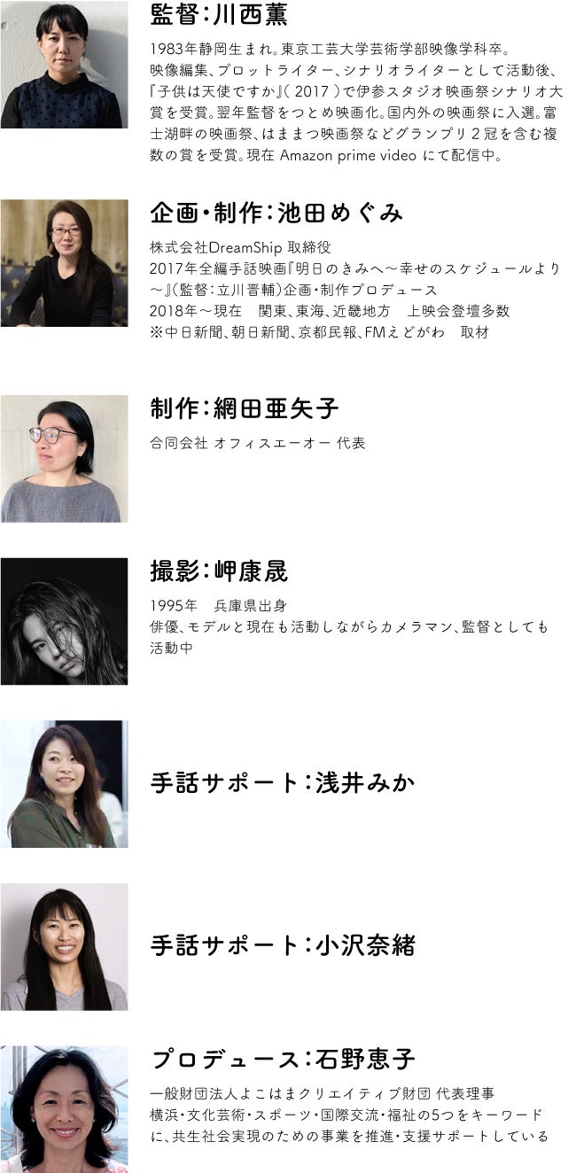 2017年、全編手話映画『明日のきみへ~幸せのスケジュールより~』をプロデュースしました。主演をはじめ、ろう者の役者さんを4名採用し、ともに作品をつくるということにチャレンジしました。