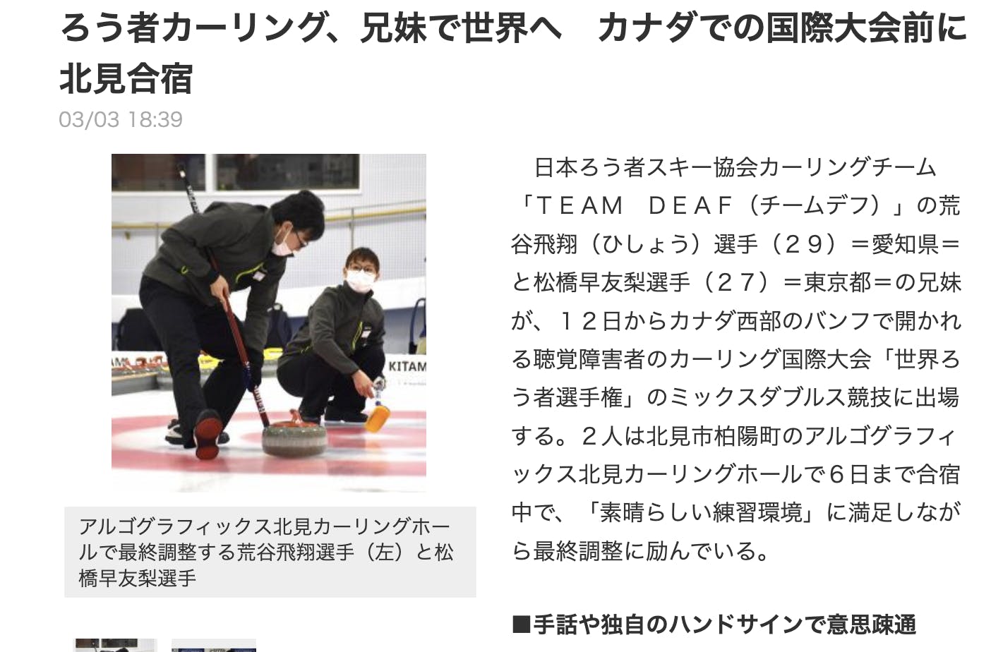 <北海道新聞>ろう者カーリング、兄妹で世界へ カナダでの国際大会前に北見合宿