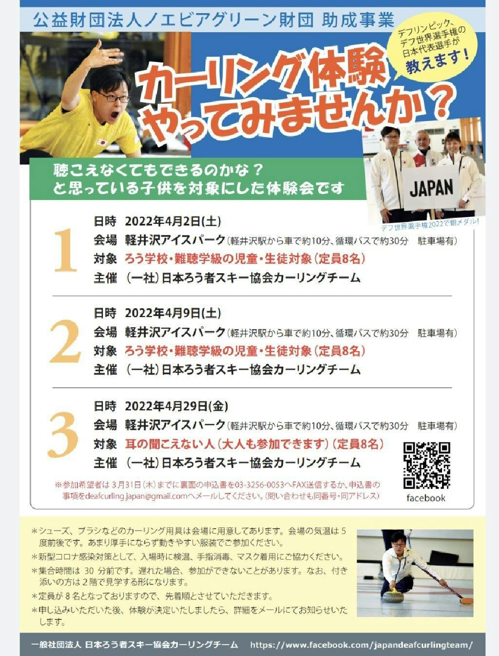 松橋さんとお兄様がろう者を対象としたカーリング体験会を軽井沢で実施されます。