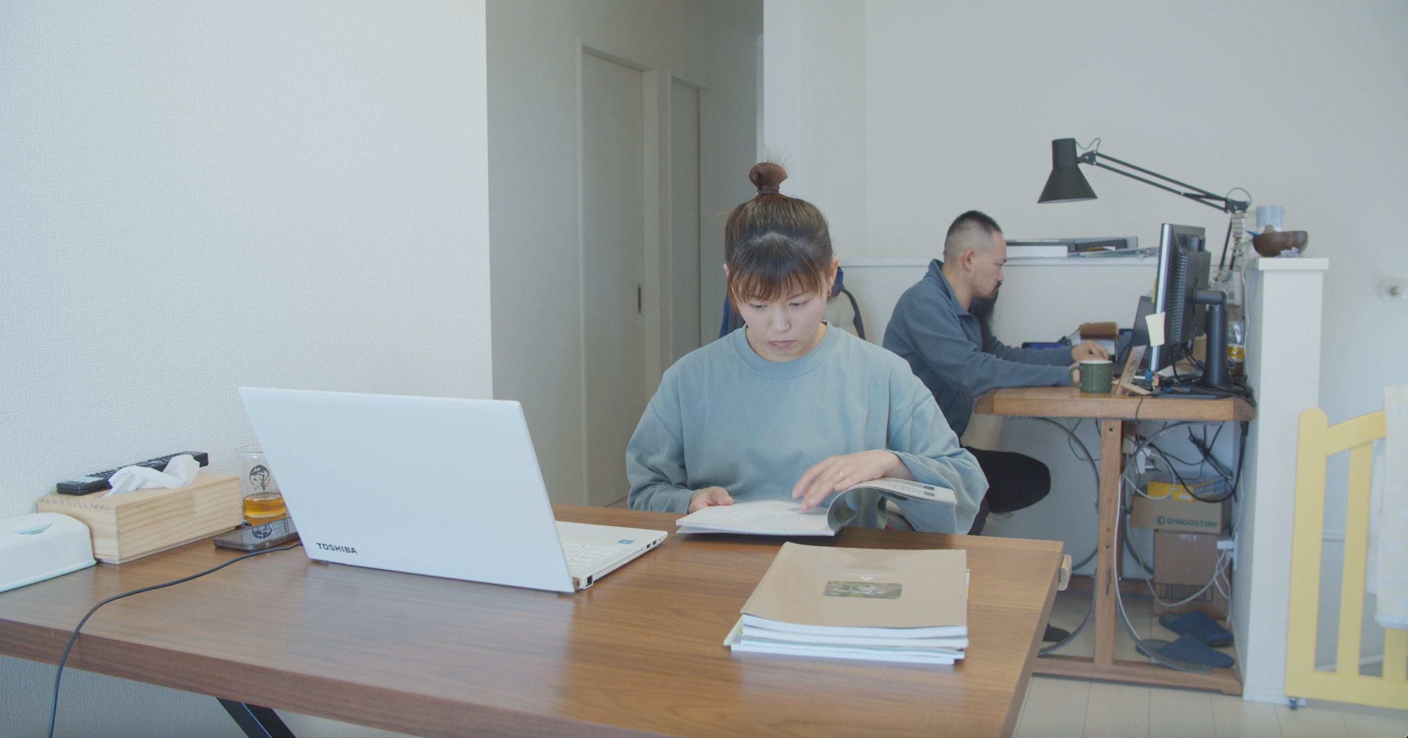 この日も娘さんの登園から撮影させて頂きまいた。慣らし保育も終わり、お仕事中の松橋さん。