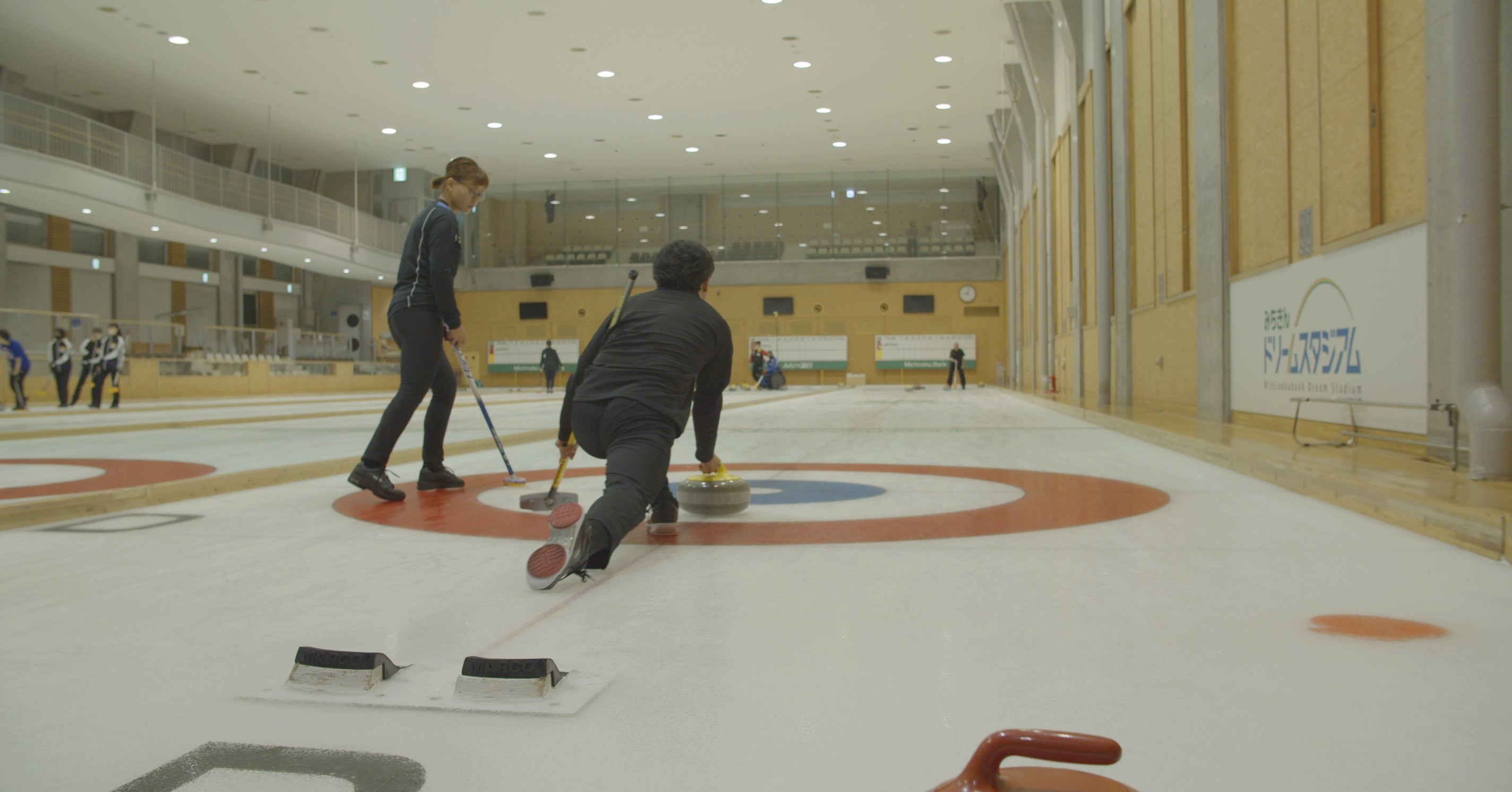 夜は、松橋さんが地元で練習していたカーリグ場で練習風景を撮影しました。