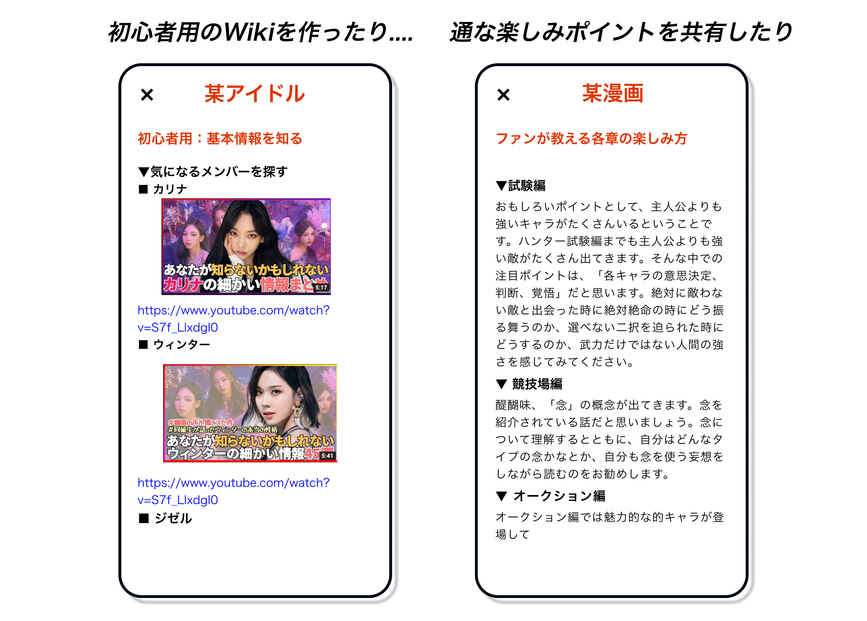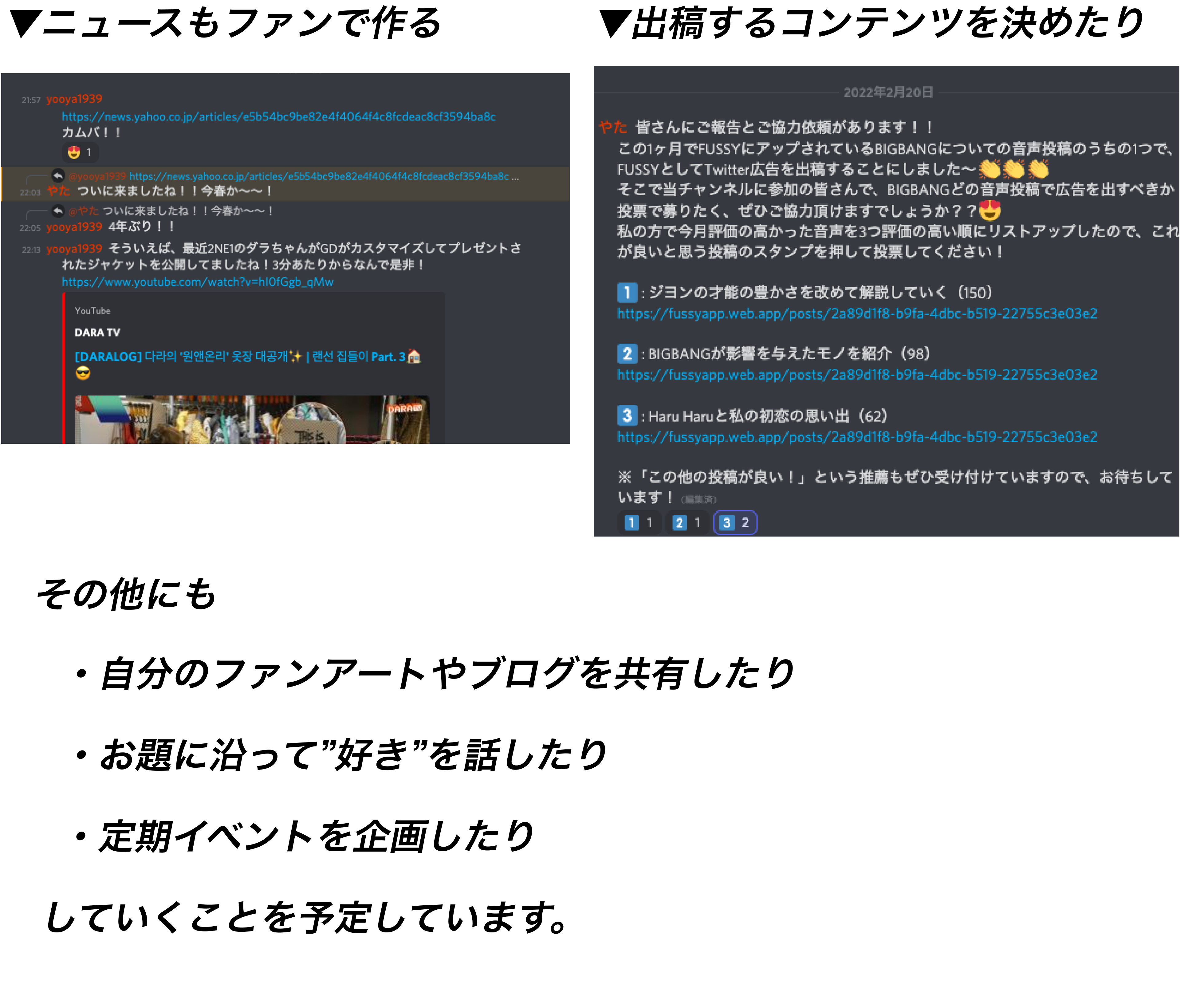 FUSSYの中で好きなものを布教したりコンテンツを楽しむことによって、ユーザーの方だけでなく、みなさまの「好きなもの」(例えば少女時代)にもリターンがあるようなサービスにしていきたいと思っています。