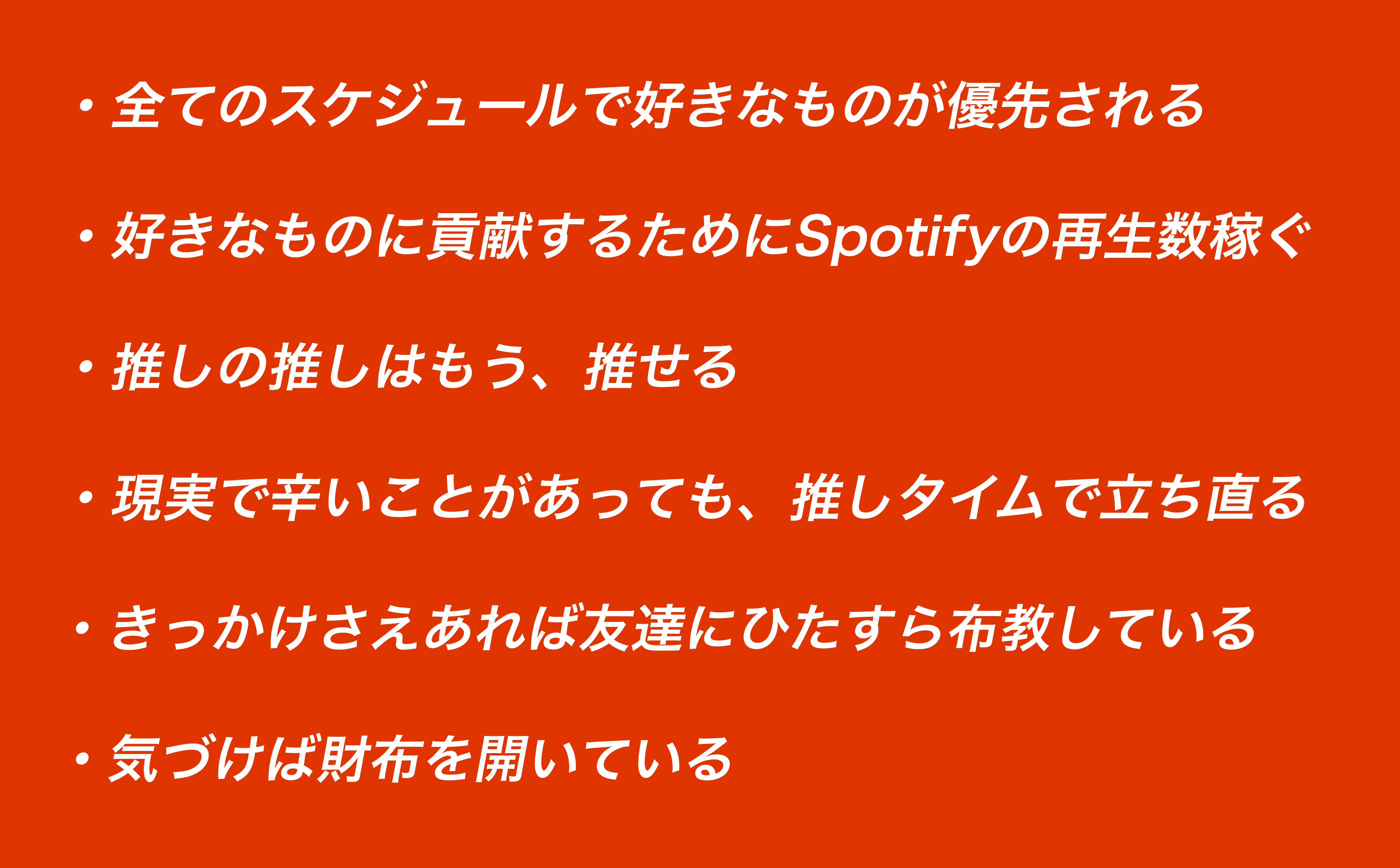 私は偏愛しているものが多いです。少女時代、aespa、清水エスパルス、左ききのエレン、ブルーピリオド、HUNTER×HUNTER、攻殻機動隊、SPECなどが大好きです。下記は私の推しに対しての行動なんですが、共感いただける方いらっしゃいませんか?