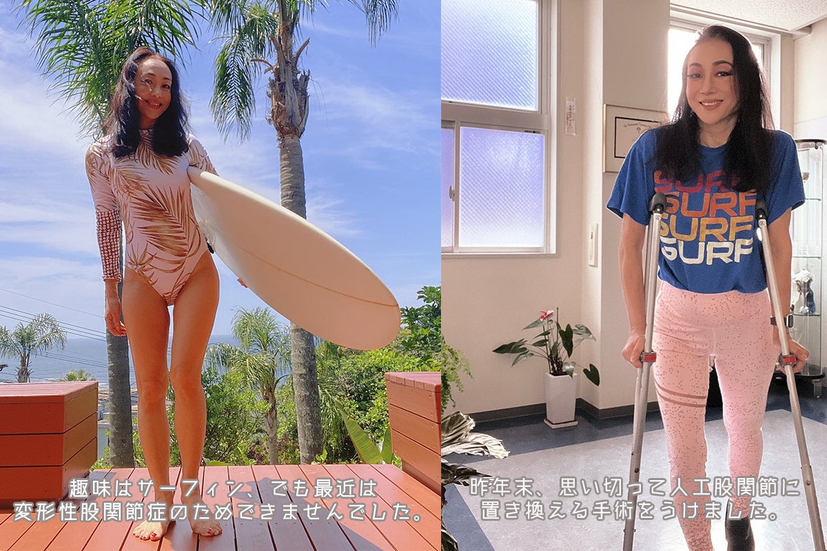 世界大会に行くことが決まってから、変形性股関節症を発病。歩くことも厳しくなり、昨年末、人口関節に置き換える手術をしました。また、ヘアカラーを繰り返していたため、全身に湿疹ができて1年以上もなおらないし、髪の毛が抜け落ちる。と、ビューティからは程遠い出来事が続いていますが、夢に向かって、突き進んでいます。