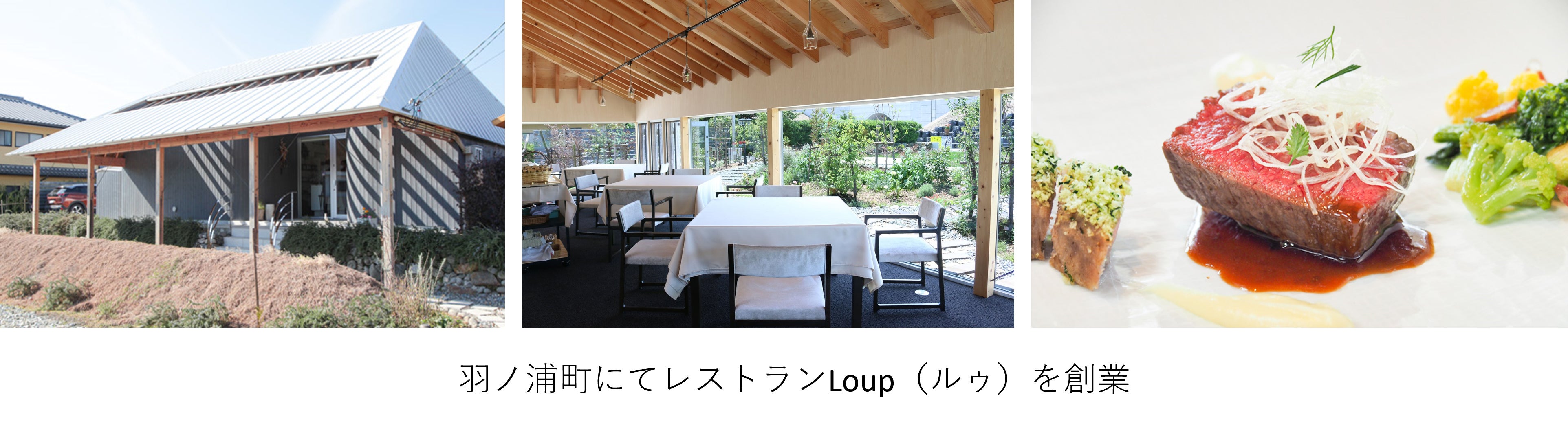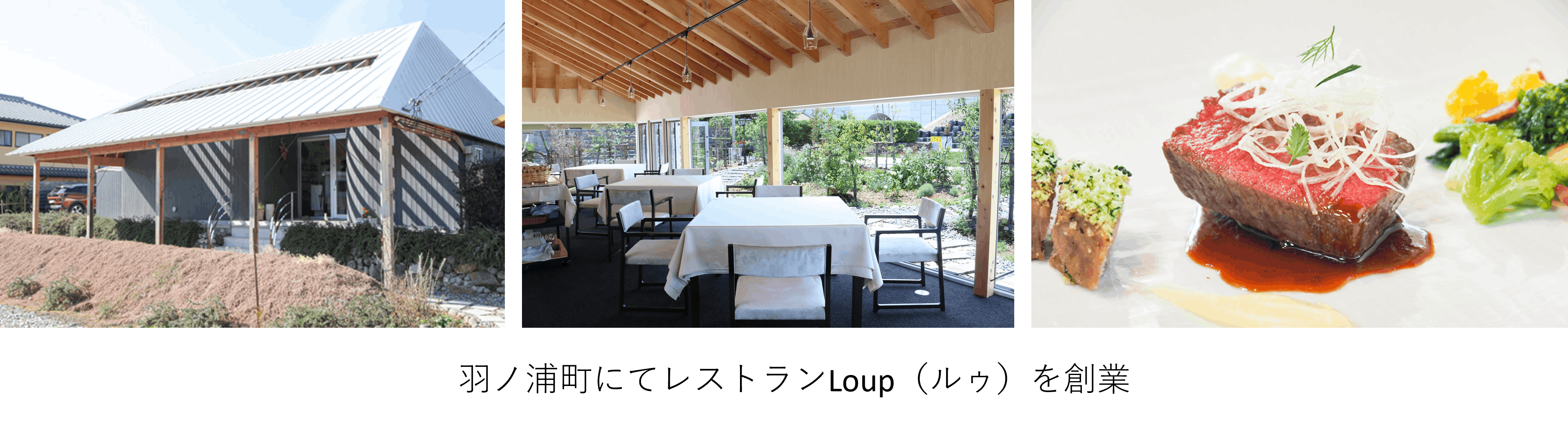 Loup(ルゥ)は、東京・フランスで腕を磨いたシェフが、地元の生産者の人々から直接買い付けた新鮮な食材でつくる完全予約制のフランス料理店です。テーブルマナーは気にせず、ごゆっくりとお食事をお楽しみください。季節ごとにメニューが変わり、その時々の旬の食材を堪能することができる。地元の美味しいものをさらに広めていきたいと、今後はシカやイノシシなどの地元のジビエ料理も提供する予定です。