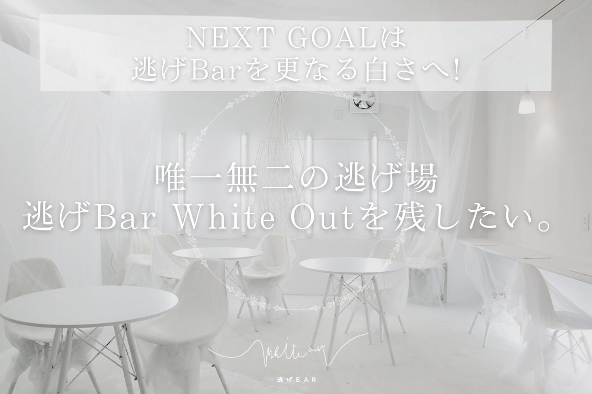 ここからは実際に必要な家賃額である204万をネクストゴールとして、更に加速していければと思います。ストレッチゴールとしては150万で逃げBarの全てを再塗装して更に白く、、 200万で照明の数を増やして前も見えないような光の空間へ、、集まれば集まるほど逃げBarが更に進化していきます!