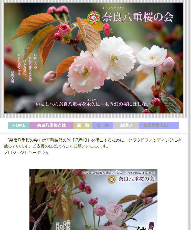 クラウドファンディング挑戦にあわせて、「奈良八重桜の会」のホームページをリニューアルしました。