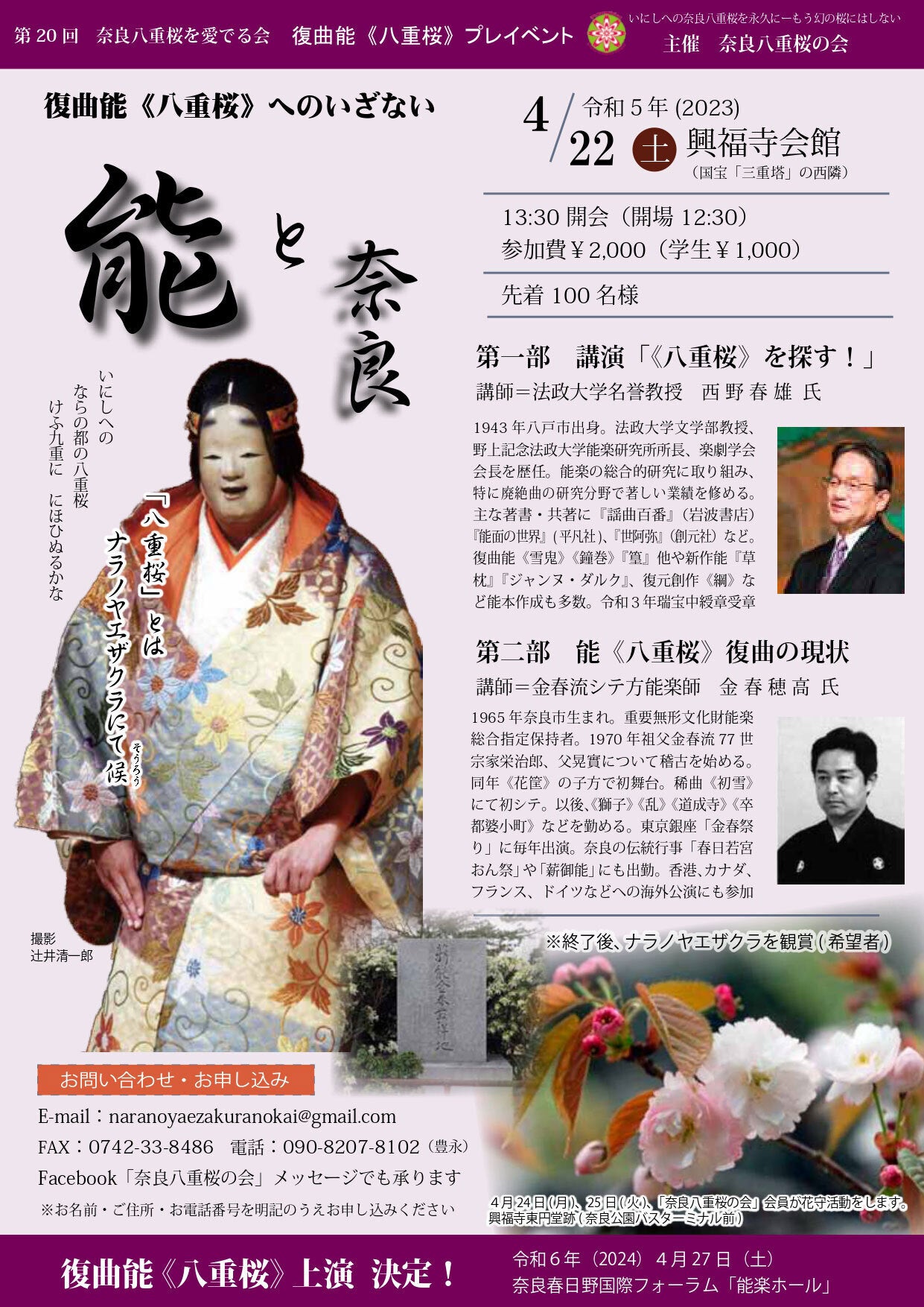 復曲能《八重桜》プレイベント「能と奈良」