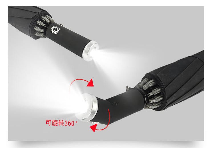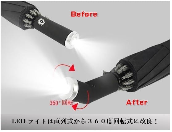 懐中電灯としても使えますし、傘をさすときにこれまでのLEDライトでは足元だけでしたが、回転式だと見たい方向を照らすことが可能となります。