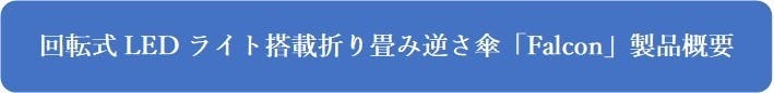 今回の回転式LEDライト搭載折り畳み逆さ傘「Falcon」は当社オリジナルの第2弾となる商品です。「Falcon Umbrella」をご支援頂いた皆様にリターンでお届けします。