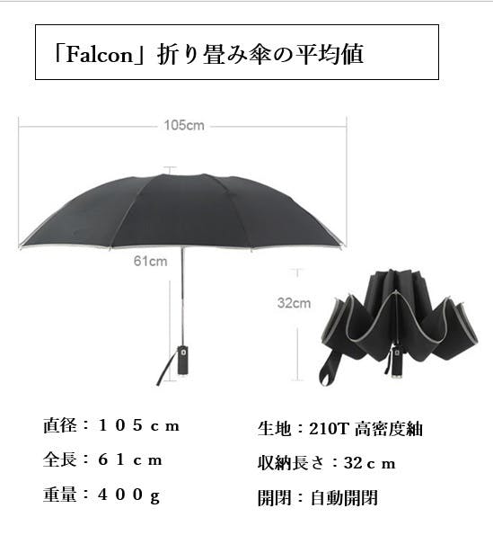 これらの高機能を備えたのが折り畳み逆さ傘「Falcon」です。