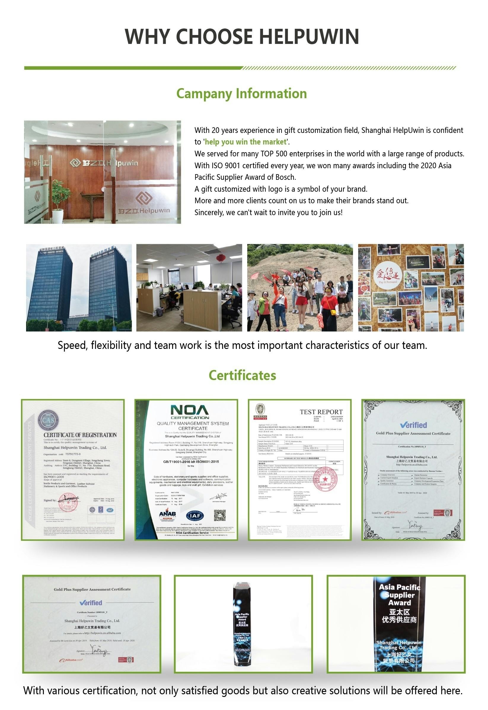 Shanghai Helpuwin Trading Co., Ltd.はギフトの分野で20年の経験を持ち世界中で500企業に多数の製品を提供しています。
