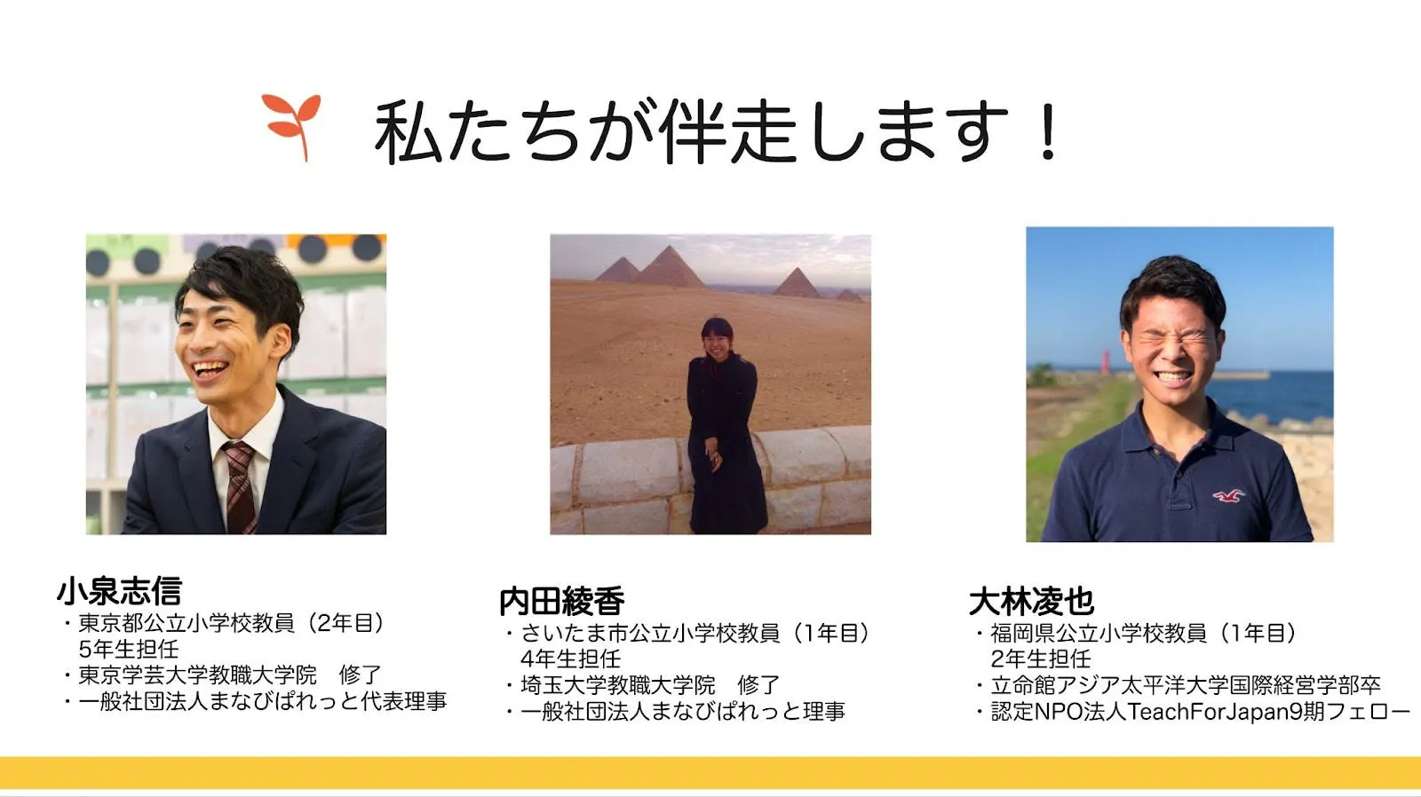想いがある教員が学校現場を辞めてしまうことは未来の子どもにとって損失となってしまいます。そこを私たちまなびぱれっとは何としても食い止めたいです。