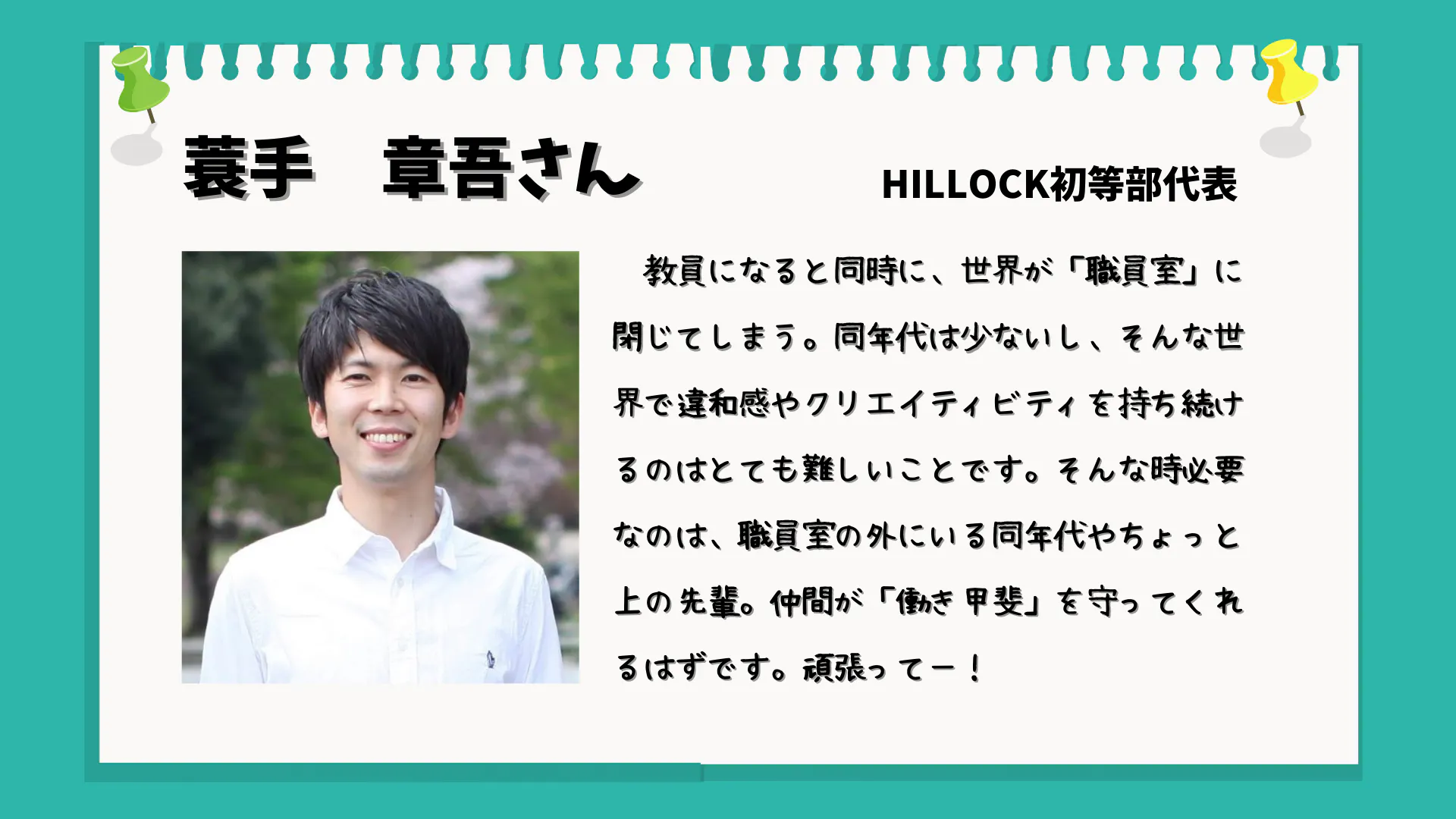 これから教育現場で求められることが多様化していく社会において、一人の教員が子ども達の全てのニーズに応えていくことは不可能だと思っています。