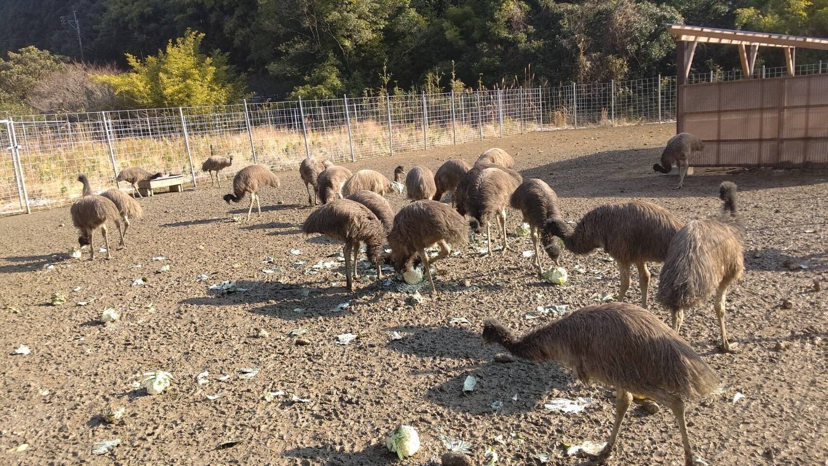 30羽のチビエミュー達が鶴喰へやってきました!!&エサ置き小屋、ベンチの設置、雨水対策が完了しました!!