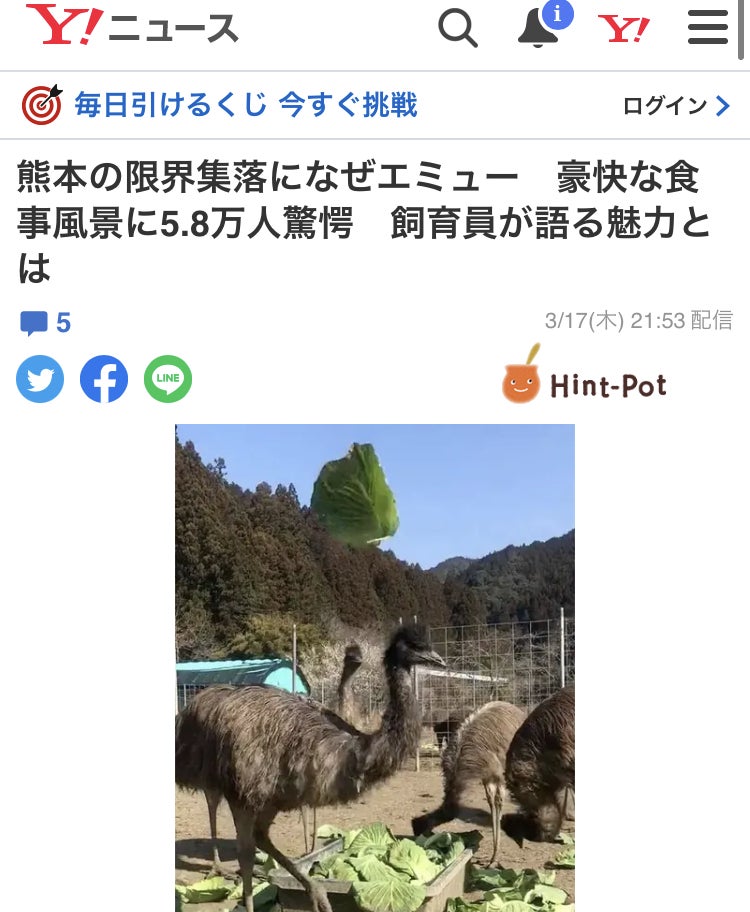 熊本の限界集落になぜエミュー 豪快な食事風景に5.8万人驚愕 飼育員が語る魅力とは