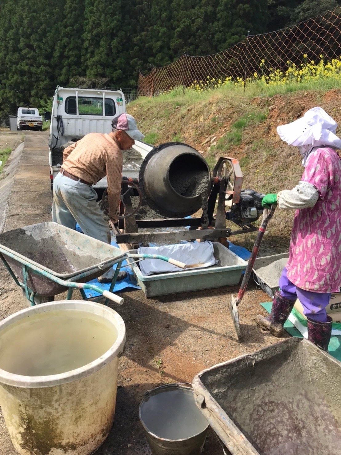 菜の花が咲く空気がきれいで自然いっぱいの山の中にその飼育場があります。