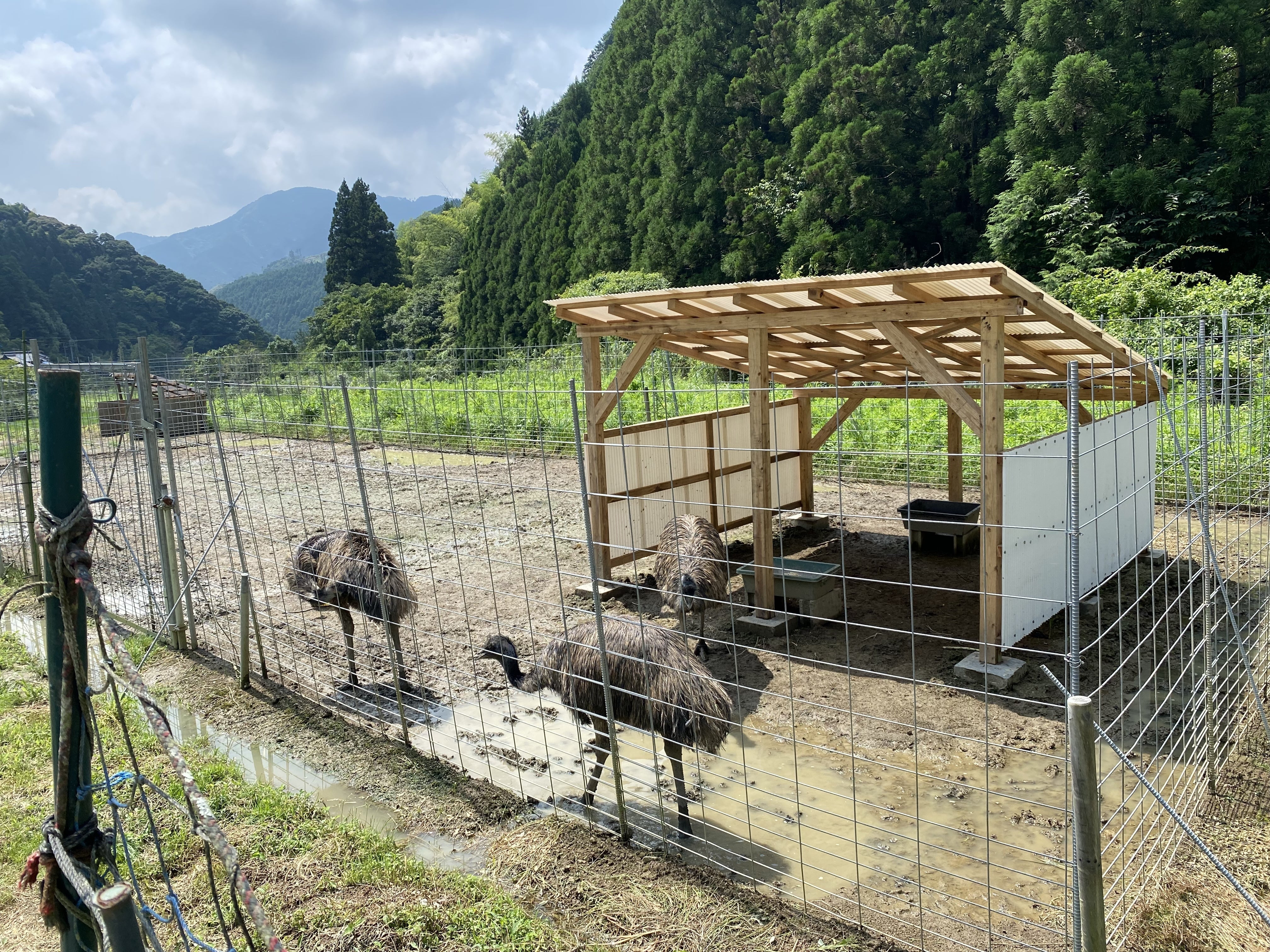 少子高齢化が進む鶴喰なの花村の救世主「エミュー」の小屋を皆様に作っていただくことで、エミューかかるストレスを軽減することができ、さらに8月には30羽を雛を受け入れる事もできました。