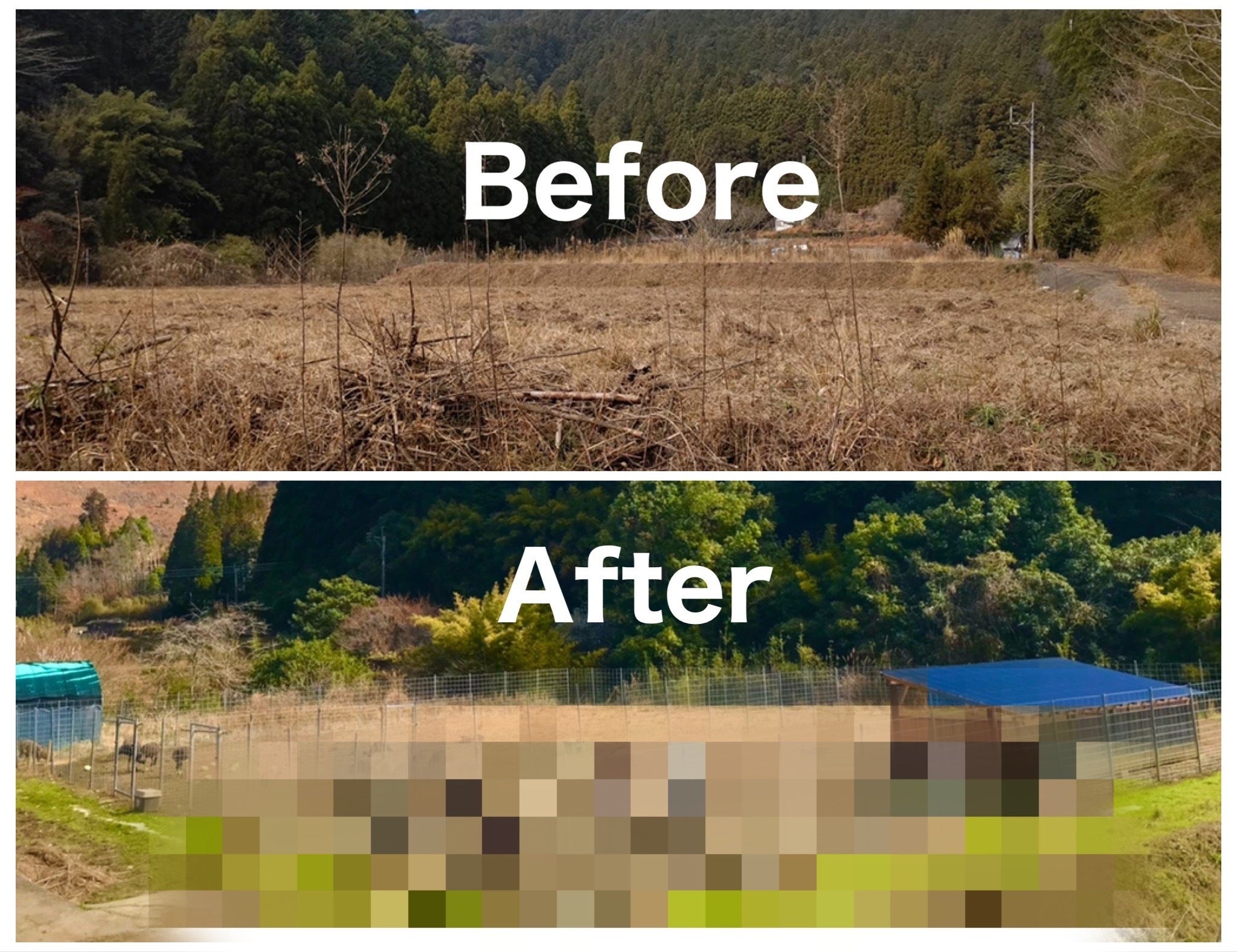 皆様、こんばんは。鶴喰なの花村の早川です。本プロジェクトは本日3月17日時点で64名の方々にご支援頂きました。たくさんの温かい応援のコメントも頂き、とても励みになっております。皆様、どうもありがとうございます!今回の活動報告は、「エミューが暮らす耕作放棄地はいま!?」ということで、高齢化・過疎化が進む限界集落「鶴喰地区」の耕作放棄地はエミュー達が来てくれた後、どのようになったのか?をご紹介したいと思います。まず、私達のような中山間地域が抱えている最大の問題は、高齢化・過疎化。そして、それが原因で発生する耕作放棄地です。エミューが鶴喰にやって来る以前、現在飼育している場所は、下の写真のような状態でした。耕作が放棄された田畑や管理が届かなくなった山には、イノシシ・シカが繁殖し、害獣被害によって農家の栽培意欲を失わせ、更なる耕作放棄地を生むという悪循環となっています。一方で、農業従事者は、高齢化で体力が低下し、足場の悪い圃場での作業では事故を起す可能性が高まります。これも耕作放棄地を生む原因の一つなのです。これが理由となって、令和3年には、鶴喰なの花村でも約1haの田んぼで水稲栽培を断念しました。つまり、このような耕作放棄地が増加すればするほど、鶴喰米を始めとする農産物の生産量が減り、それにより集落の収入も減り、この土地に住む人もどんどん減少。集落はより一層、消滅へ向かっていくのです。しかし、鶴喰地区の私たちは、この状況を座視することなく“どぎゃんかする”気概に溢れています。平成27年に熊本県から中山間農地集積の重点地区として鶴喰が指定され、さらに令和3年1月、熊本県県南本部より「鶴喰なの花村が耕作を断念した田んぼに、エミューの試験飼育をやってみないか?」と提案があり、エミューの飼育を開始しました。すると、どうでしょう!手入れが届かず、荒れていた田畑はいま、エミューのおかげでみるみる蘇っているのです!(撮影者:みやびとさん@miyagawat211)エミューを飼った場所にはエミューの糞が有機肥料となって肥沃化します。エミューを別の場所に移動させると、有機栽培が可能な畑になります。いわゆる循環式農業です。更に、エミュー飼育の担当者にとっては収入をもたらします。さらに、エミュー達がやってきてから、害獣の被害もなくなりました。これは、鶴喰の様な老いた地域において、とても活気的な事なのです。(撮影者:みやびとさん@miyagawat211)また、珍しいエミューの存在は、鶴喰地区だけでなく令和2年熊本南部7月豪雨で壊滅的な被害を被った坂本町の復興にも貢献しています。(撮影者:みやびとさん@miyagawat211)このように、耕作放棄地だった土地は今、エミュー達のおかげで蘇りつつあります。エミュー達が鶴喰ですこやかに育つよう、環境を整えながら、農地再生と雇用創出に向けて進んでいきたいと思います。早川美緒▲▽▲▽▲▽▲▽▲▽▲次回の活動報告(予定)▲▽▲▽▲▽▲▽▲▽▲・3/18…鶴喰エミュー日記 〜試験飼育から今まで〜■3/20(土) 20:00〜20:15■Twitterのスペースにてトークライブ開催予定!鶴喰なの花村の事務局長 早川博秋より「エミュー達が限界集落の鶴喰にもたらした良い影響」「鶴喰の観光」についてお話します!Twitterアカウント↓↓↓↓↓↓↓↓@nanohanamura  農事組合法人「鶴喰なの花村」@八代市坂本町