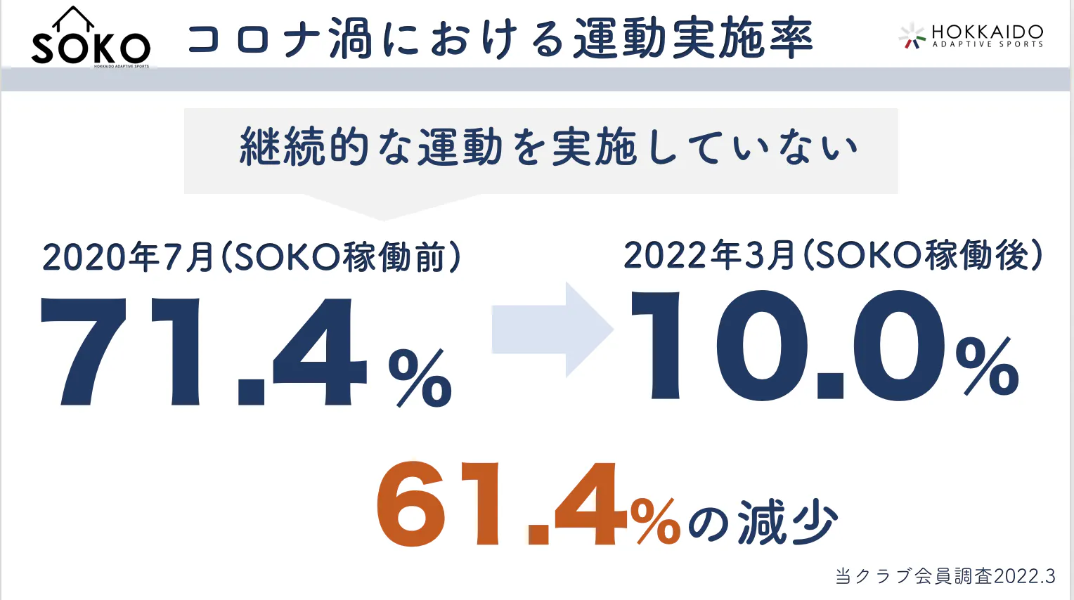 SOKOの稼働により、コロナ渦でも車いすの子供たちが継続的に運動できるようになりました。