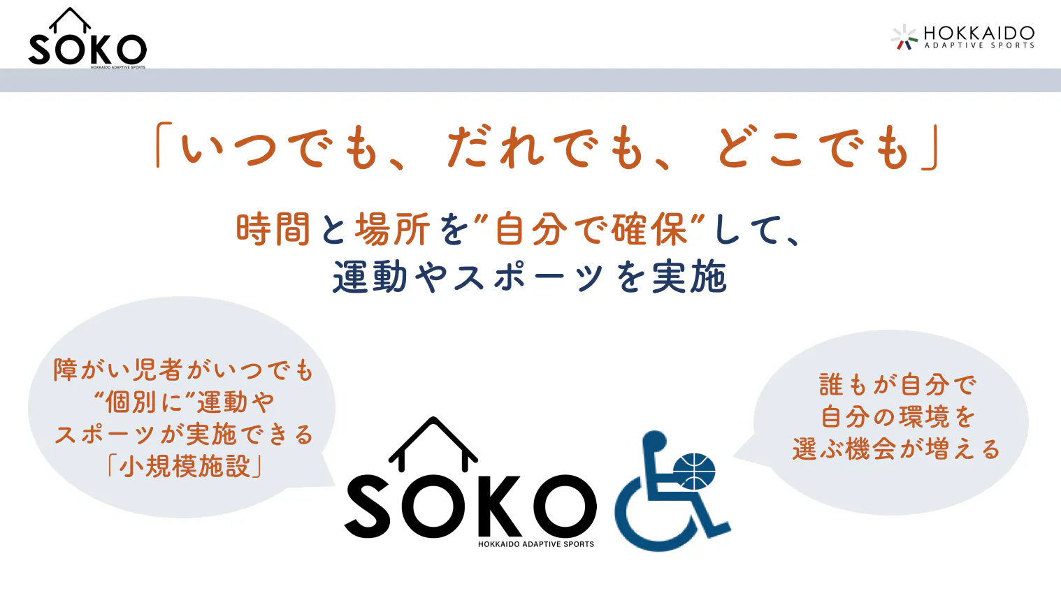 私たちの目標はSOKOの継続だけではありません。今回の挑戦を機に、より多くの人にパラスポーツの魅力を知っていただけると嬉しいです。そして、まだスポーツが出来ずにいる車いすの子供たちを始め、一人でも多くの仲間たちがスポーツを楽しめる環境につながるように。パラスポーツを一緒にやってみたい人、サポートしてみたい人、応援してみたい人、なんかちょっと気になるという人などなど、たくさんの人たちと仲間になれるように。多くの方々に活動に触れていただけると嬉しいです!!