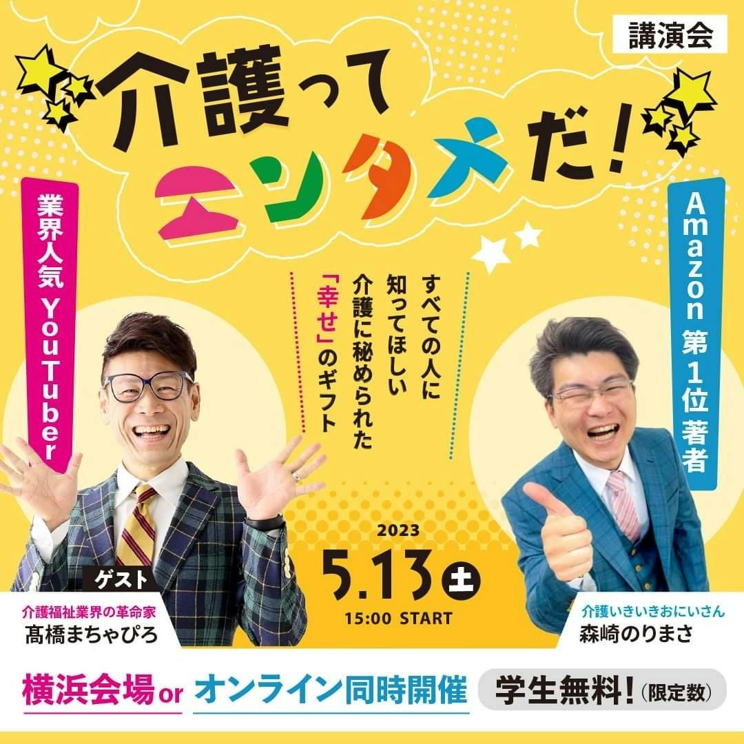 そして、 5/13に開催される講演会 『介護ってエンタメだ!〜介護福祉業界の革命家&介護いきいきおにいさんが語るホントのおもしろさ〜 』もいよいよあと11日です‼