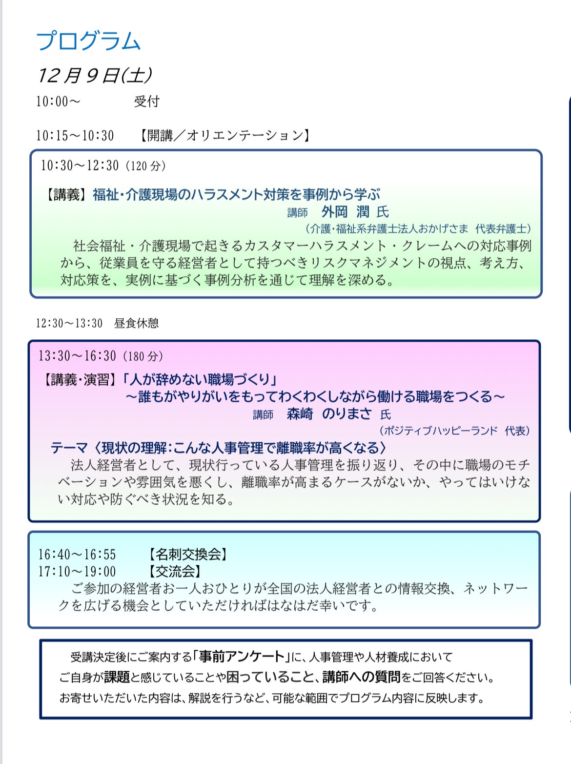 特養や老健の施設長や社会福祉法人の理事の方などはぜひお申し込みくださいね♪