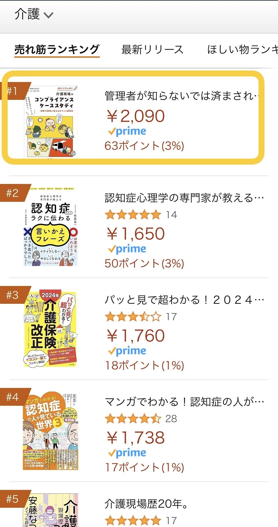 私の2作目の著書『介護現場のコンプライアンスケーススタディ』がAmazonランキング介護部門で1位になりました!
