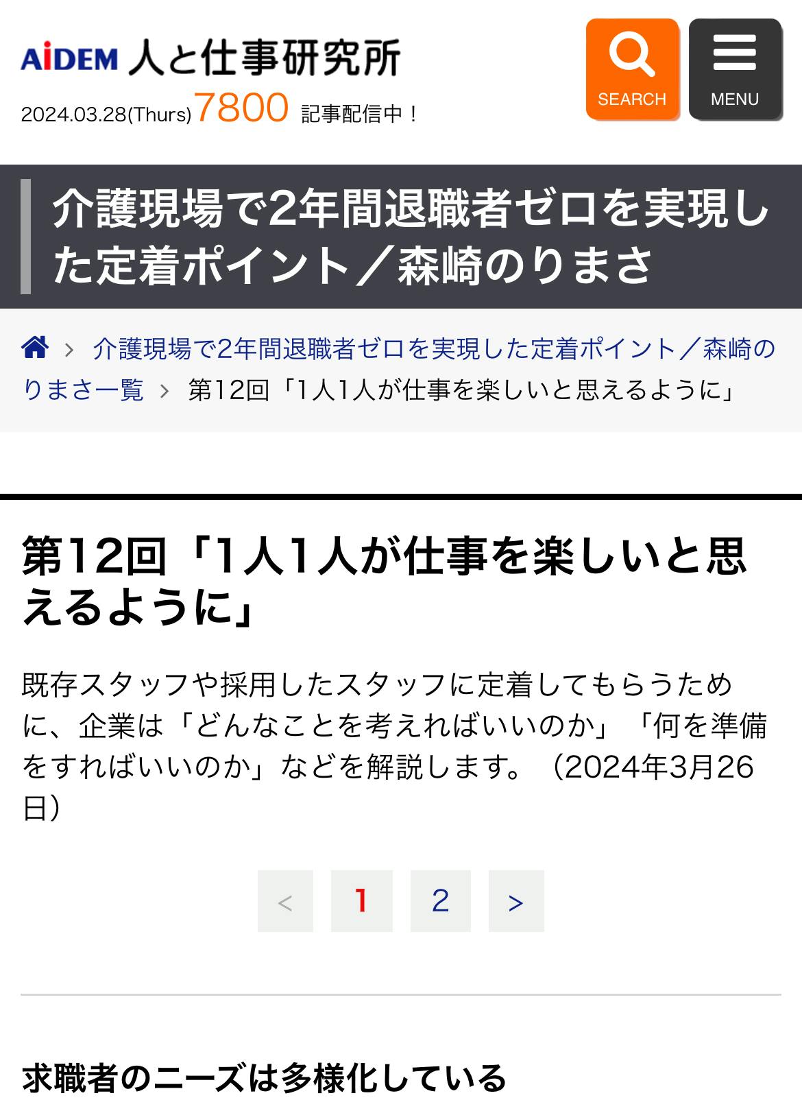 『退職者を出さない管理者が必ずやっていること』と『介護現場のコンプライアンス ケーススタディ』の著書、森崎のりまさです。