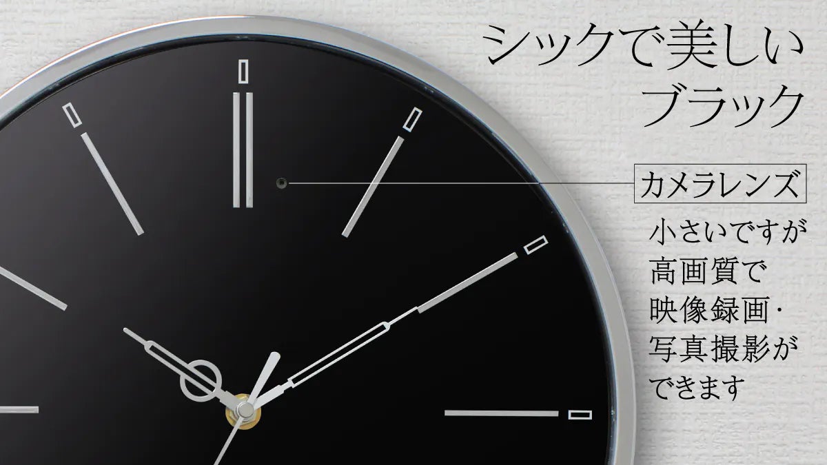 この「WALL CLOCK」は内蔵のフルハイビジョンカメラで、ご家庭でのお子さんや高齢者の方の見守り録画、オフィスでの従業員・作業員の見守り録画ができます。それだけでなく、防犯や記録にもお使いいただけます。
