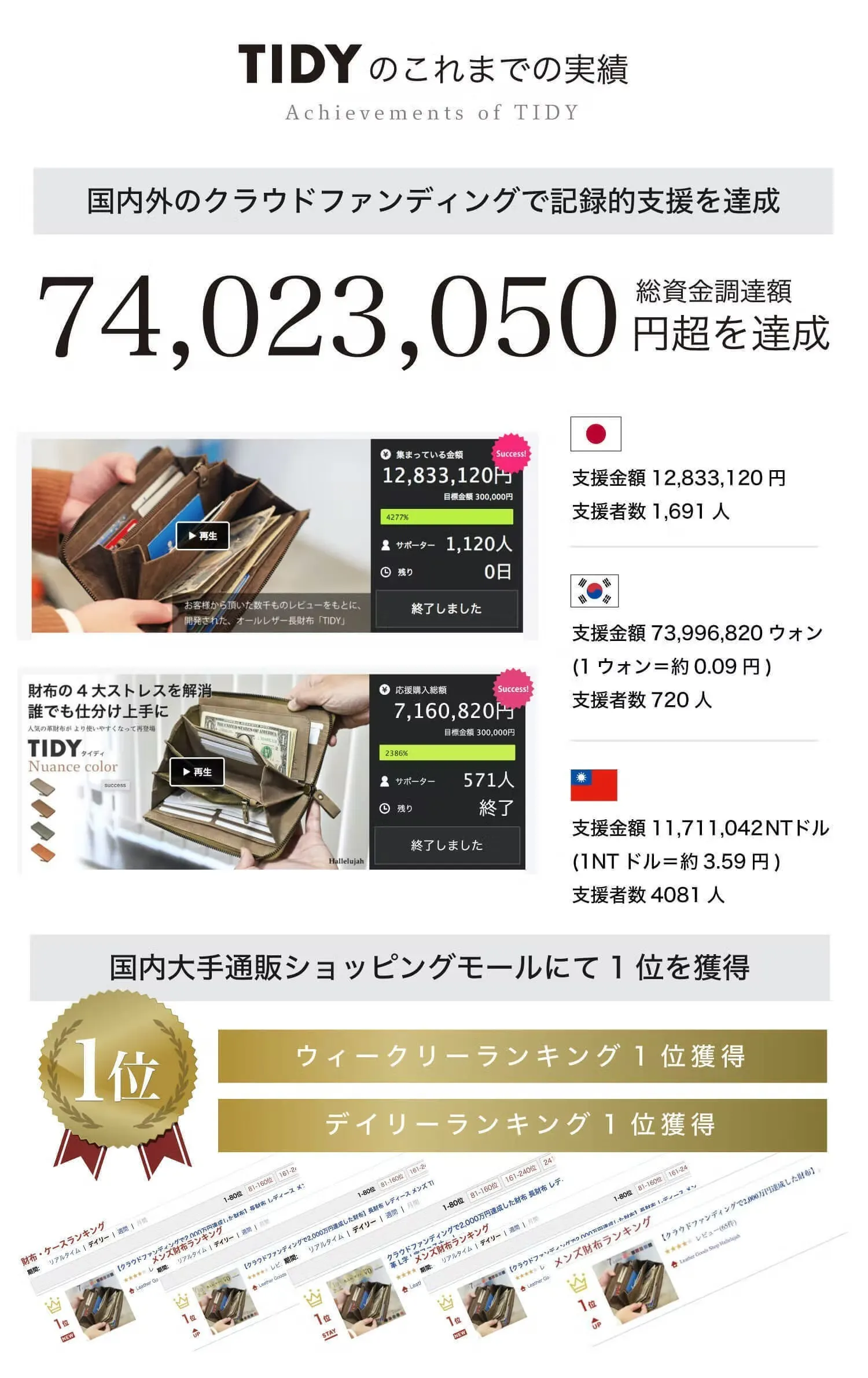 2022/05/31 17:59たくさんのご支援をいただき、無事にプロジェクトを終える事が出来ました。整理整頓革財布。栃木レザー製ホワイトワックス【TIDY-Classic mini】今回も多くの方に共感いただき、成功まで導いていただきました。71名のご支援をいただく事が出来ました。日々新しいプロダクトが発表される中、当プロジェクトへ期待を持ってご支援いただいたものと、スタッフ一同感謝の気持ちで一杯です。【配送について】リターンに関しては今週中の発送を予定しています。※応援購入の際にご登録いただいた発送先住所に変更のある方はお問い合わせください。お届けまで今しばらくお待ちいただけますと幸いです。Hallelujah もっと見る