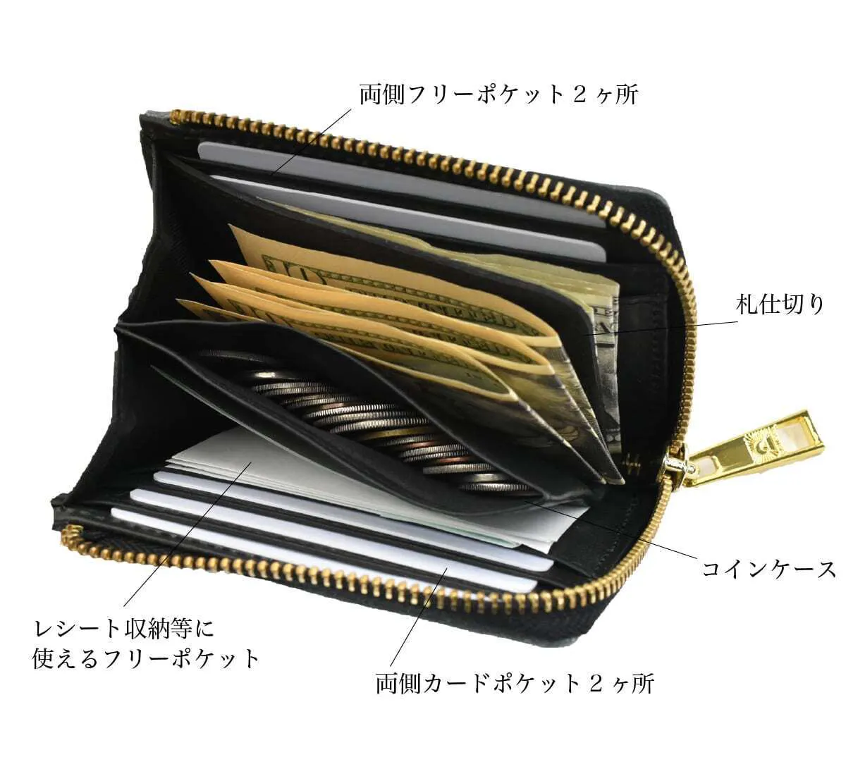 機能:カード収納ポケット×6 / 札入れ×1 / 札仕切り×1 / ファスナー無し小銭いれ×1 /