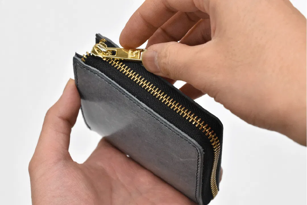 小銭入れのファスナーと引き手にはスムーズはYKK製を採用。