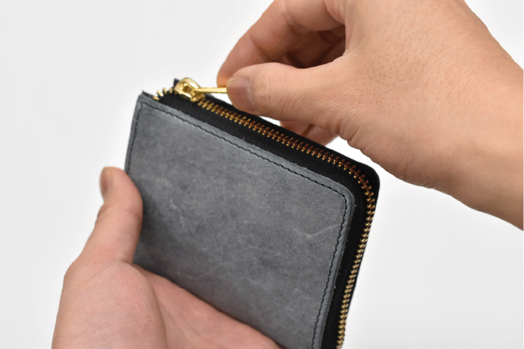 小銭入れのファスナーと引き手にはスムーズはYKK製を採用。