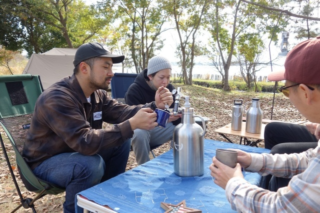 海外でビールが飲めるタンブラーを愛用していたキャンパー、