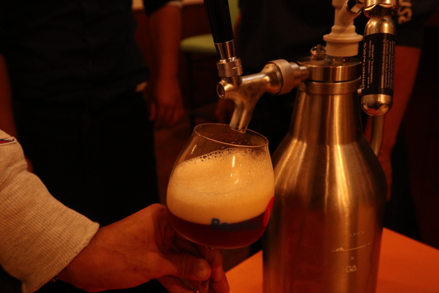 サーバーを通して注ぎ、「香りが飛んでいないか」「炭酸は抜けていないか」などを、試飲でチェックしていただきました。 レビューは下記をご確認ください。