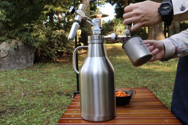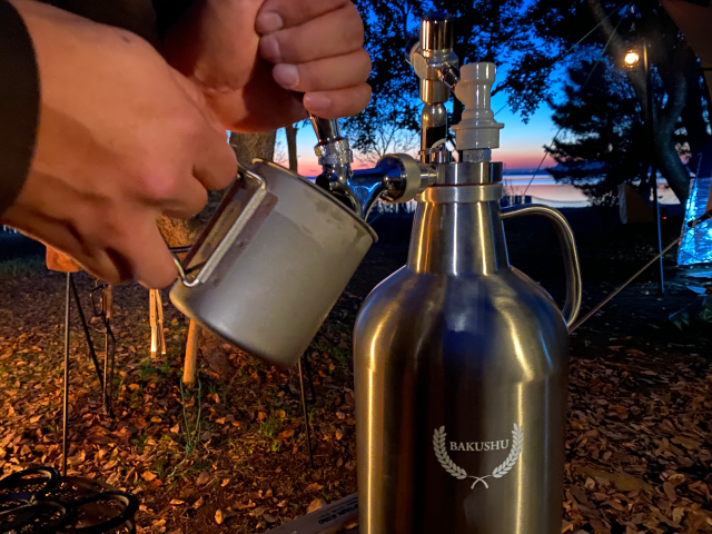 試行錯誤を繰り返すうちに、生ビールサーバーにもなるキャンプの主役級アイテムとして生まれたのが、野営生ビールサーバー BAKUSHUです。