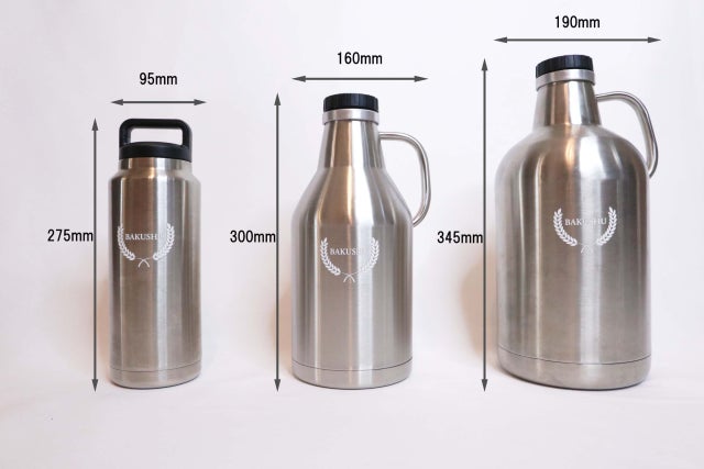 大容量のサーバーとして使いたい方には、1.9Lと3.8Lがオススメ。ソロキャンなどには0.9LのBAKUSHUをご利用ください(0.9Lはサーバー非対応です)。