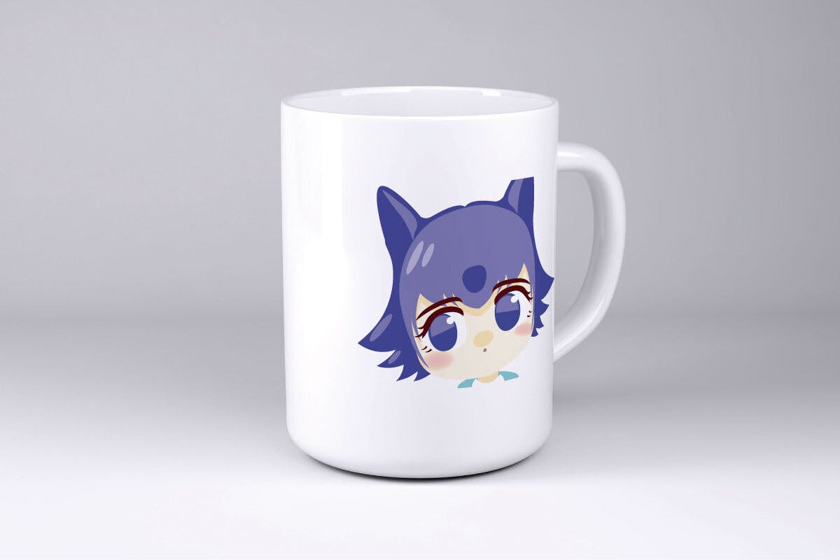 少々アンニュイで物憂げな眼がかわいらしいフロルフのマグカップです!反対側にはアプリロゴが印字されており、カッコかわいい雰囲気が演出されています。