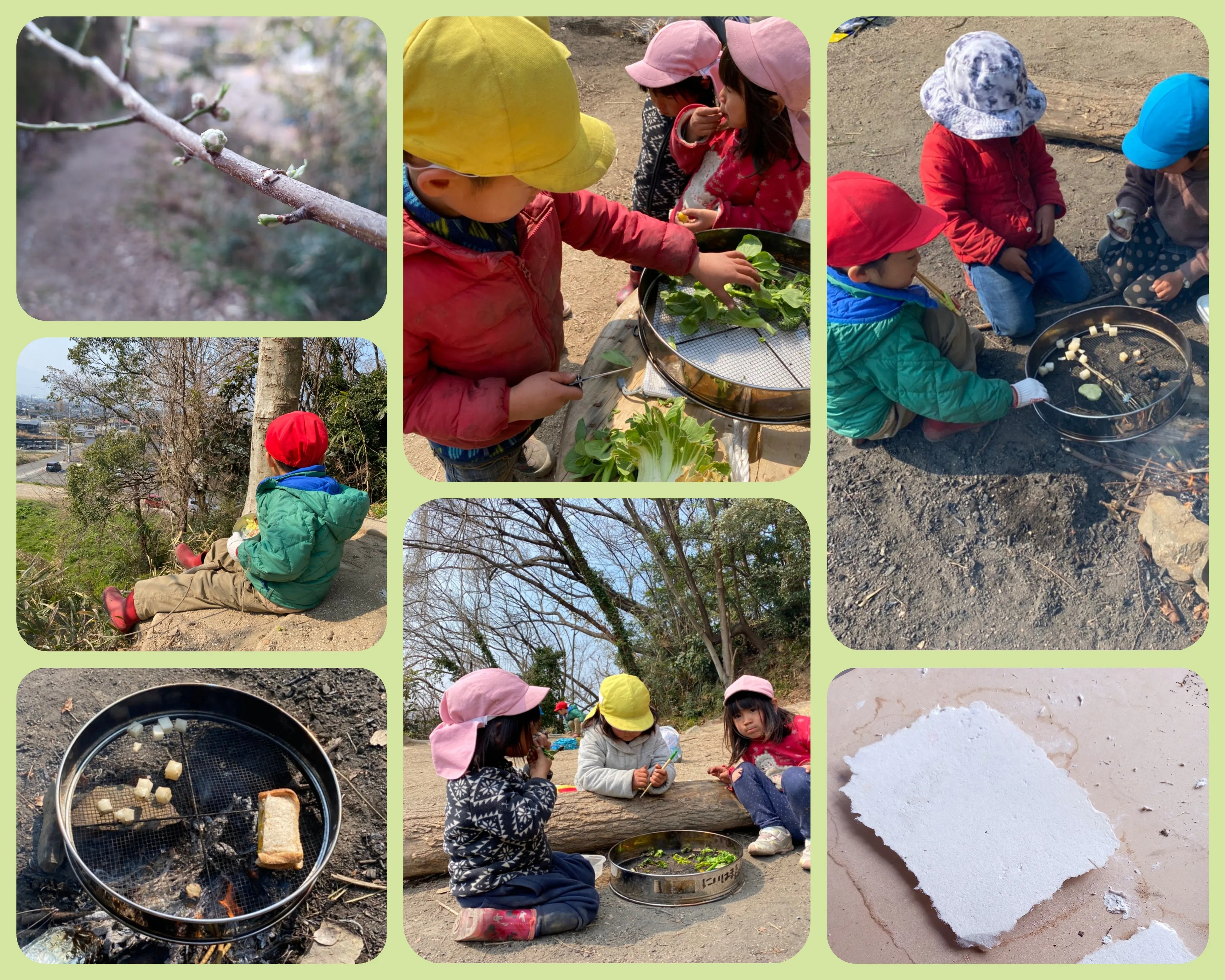 2022/03/09 17:04いよいよこのプロジェクトも終了まで残り数時間。正直なところ…ここまでご支援をいただけるとは思っていなかったので驚き!!本当にありがとうございます。改めて、この活動を応援してくださる方がたくさんいることに気付くことができました。今日もにいはま森のようちえんの子どもたちはのびのび遊んできました♪先週、牛乳パックから作った和紙が、しっかりと乾いて、完成しました☆「何を書こう…あっ!お母さんが誕生日だから…ケーキを書こうかな!!」と年少さん。そんなころ、「和紙はまだ置いといて山で遊ぶ!」と言っていた子たちは、持ってきたお餅を焼いて、あられ作り。それを見ていた子も、自分のお弁当のサンドイッチやお肉を焚き火で焼いて、温かいお昼ごはんに☆一人で遊びたい気持ちだった子は、駐車場の土と草に埋まっている、いつ捨てられたかわからないゴミを発掘・回収。ゴミ拾い、というか、遊びでしたね。短いロープを見つけ、縄跳び。1本のロープは、細い3本のロープから作られていることを発見。その後、みんながお山に集まり、おじいちゃんにもらったブロッコリーや、畑のチンゲンサイを焼いてお味見。バナナ鬼ごっこも始まります。2歳さんは、ホーローのお弁当箱から生まれる音を楽しむ。アイス屋さんも始まり、その横では手遊び歌。ご飯を食べる時間も惜しいくらい、一日を遊び尽くしています。スタッフが、「大丈夫?」と声をかけていると、ササッと他の子が様子を確認しに近寄っていきます。ティッシュがなくて困ってる子に気付くと、「持ってきたけん、私の使って!」と。名前をいじられて嫌だった子に寄り添って、「その呼び方、やめてほしいんだって!もうやめてあげて!」と一緒に伝えに行く子もいます。「そっちに行くと道路にでちゃうからこっちのお山の方で遊ぼう」と子どもたちで小さい子に声を掛け合います。お家の人に会いたくなって泣いてる2歳の周りには年少さん3人が集まって、たくさん声をかけてくれます。自由に遊びながらも、周りの子をよく見ています。大人が過度に守って、解決しようとしなくても、子どもたちが自分たちの力で、相手を思いやることができるのです。寄り添ってくれた友達に「自分はこんなことで困っている」「こうしたいけど、うまくいかない」ということを伝える力も育っていきます。大人が三歩下がるからこそ、子どもたちが持っている力を伸ばすことができる。明日は、海に行きます☆暖かくなってきたから、そろそろ水着シーズンが始まるのか!?明日も素敵な一日になりますように♪ もっと見る