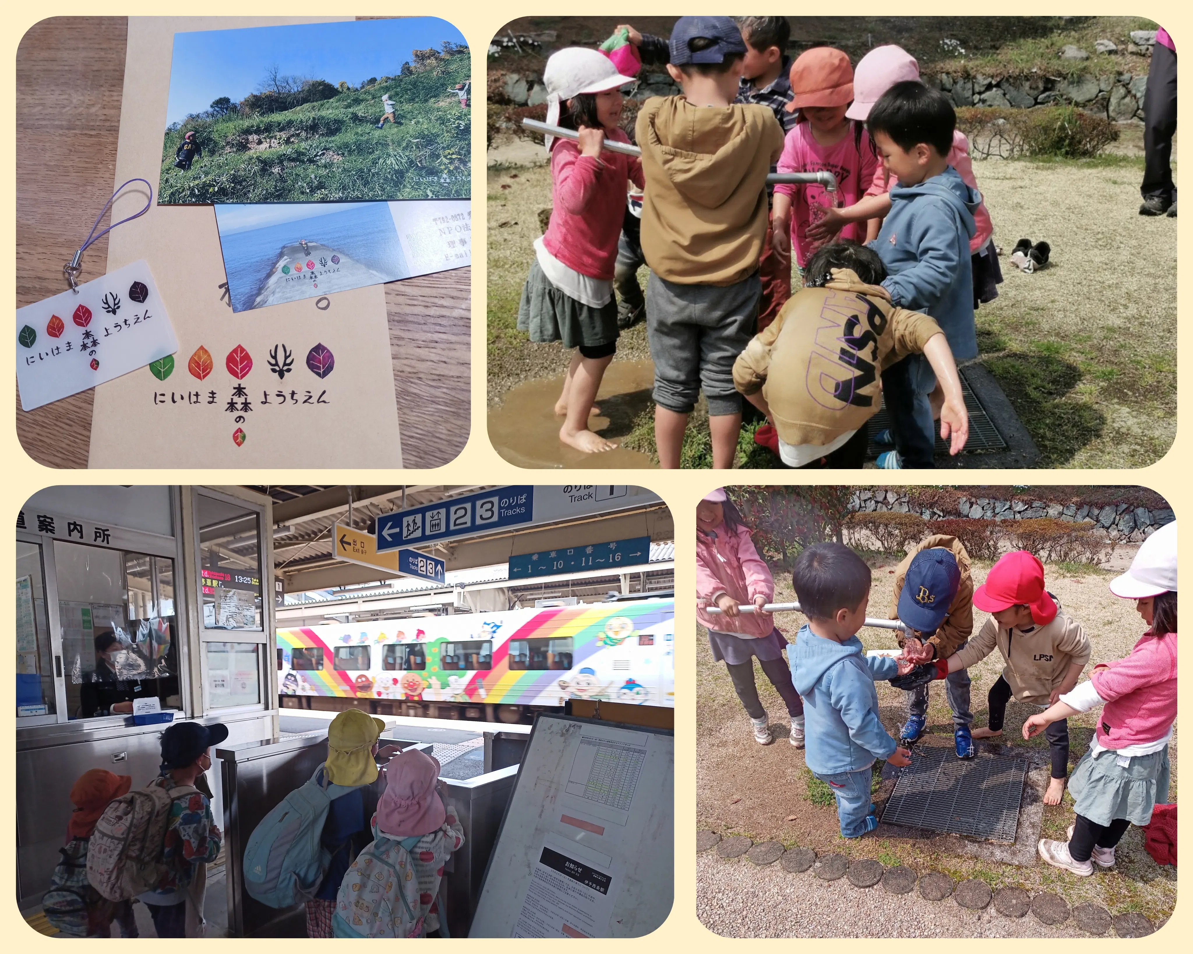 2022/03/25 21:03リターン品の発送準備中です。オリジナルキーホルダー、ポストカード、手ぬぐいは完成しました♪あとは、切手を貼るだけ☆もうしばらくお待ち下さい♪(※にいはま森のようちえんオリジナル封筒は、全員へは届きません。)今日は子どもたち、電車に乗ってきました。普段の活動では出会うことのない、湧き水、手押しポンプに大興奮。電車に乗れるように、着替えもして…全員、予定通りの電車に乗って帰ってきました♪もうそろそろ、お花見巡りもできそうです♪ もっと見る